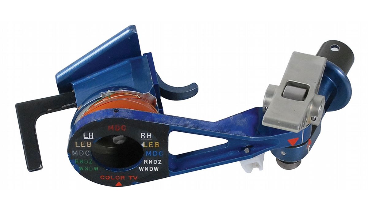 Extremely rare Apollo color television camera mount, measuring 9? in length, stenciled with several different part numbers and stamps. The mount uses an innovative design of scribed colored lines on the ball-joint; when matching colors are aligned at designated points, it provides instant correct pointing of the TV camera to the desired window or location inside the Command Module. The camera itself would slide into the triangular ‘dove-tail’ type shoe clamp mechanism on top of the ball joint. The bottom of the base has a black painted background with the following multi-colored engravings: “MDC” which is the Main Display Console—this position will show most of the control panel having most of the dials and switches used during spacecraft operations; “RH” Right Hand; “LEB” (Lower Equipment Bay—this angle shows the lower right side below the area of the crew couches); “MDC” (Main Display Console right side) and “RNDZ WNDW” (Rendezvous Window—this points the TV camera through the forward looking rendezvous and docking window. This was the pointing angle most commonly used when viewers on earth witnessed the initial transposition and docking with the Lunar Module just after Translunar Injection to the moon and the undocking of the LM prior to the lunar landing plus the rendezvous and docking after returning from the moon. The other side has engravings for the same except for being on the left side (interior views) of the Command Module. These labeled settings were used in conjunction with different bracket/camera mounting points inside the Command Module. Accompanied by copies of four pages from the Apollo Operations Handbook, detailing the television equipment, its placement, and a diagram of the camera mount. This mount is the first of its type ever offered for auction and represents a remarkable and prolific design, which would connect the astronauts not only to Mission Control, but also to the living rooms of transfixed viewers.