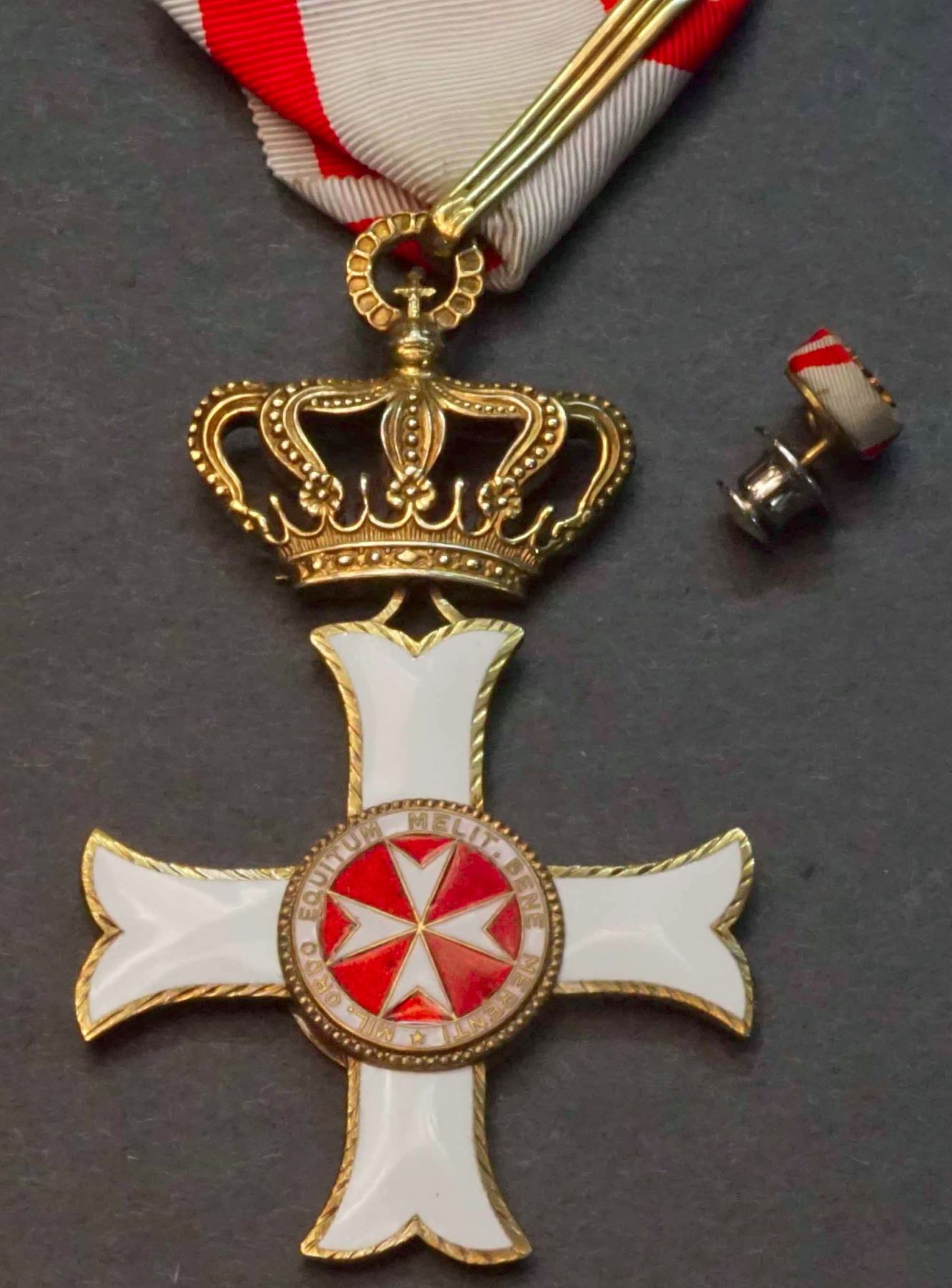 Commander's Cross of Merit, Order of Saint John of Jerusalem, Rhodes and Malta + Lapel Pin With Ribbon, EF Condition