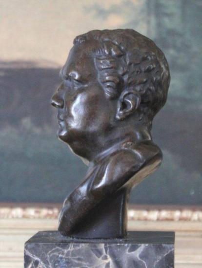 Commanding Caesar Bust Bronze Sculpture, 8 3/4inH x 3 1/2inW x 2 3/4in D 8lbs. This bronze sculpture was produced using the Lost Wax casting method. The Lost Wax Cast method is the most precise metal casting technique in existence, ensuring exquisite detail of the original host model which is usually sculpted in clay or wax. This Lost Wax casting method is an extremely labor intensive and expensive process, but the end results produce a Heirloom Quality Masterpiece!
