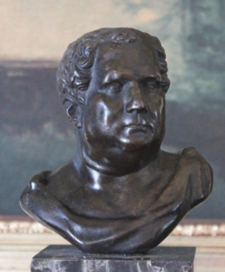 Commanding Caesar Bust Bronze Sculpture, 8 3/4inH x 3 1/2inW x 2 3/4in D 8lbs. This bronze sculpture was produced using the Lost Wax casting method. The Lost Wax Cast method is the most precise metal casting technique in existence, ensuring exquisite detail of the original host model which is usually sculpted in clay or wax. This Lost Wax casting method is an extremely labor intensive and expensive process, but the end results produce a Heirloom Quality Masterpiece!
