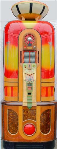 Commando Jukebox. Twenty selections, plays 78 rpm records. Approximately 5,000 produced. Unrestored box in need of mechanical and electrical restoration. Case is solid and very nice. Dial up system for dial tune selection.
