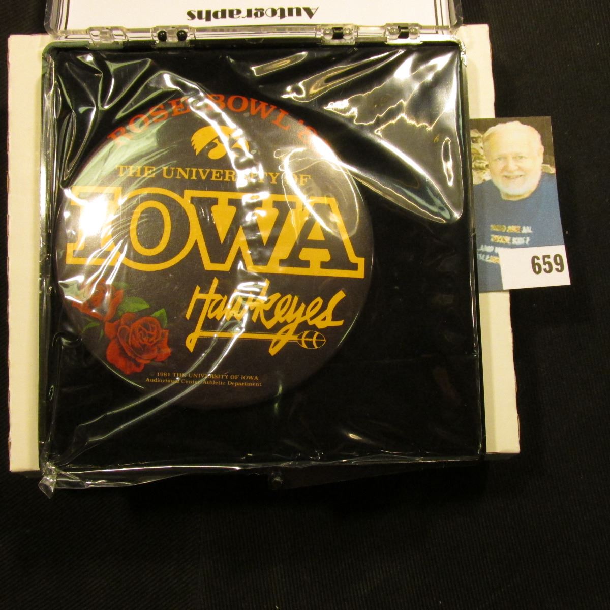 "Commemorative 1982 Rose Bowl Button Reissue 25th Anniversary Edition" Pinback, no. 129 of 500. Doc's family says that these cost $100 each.