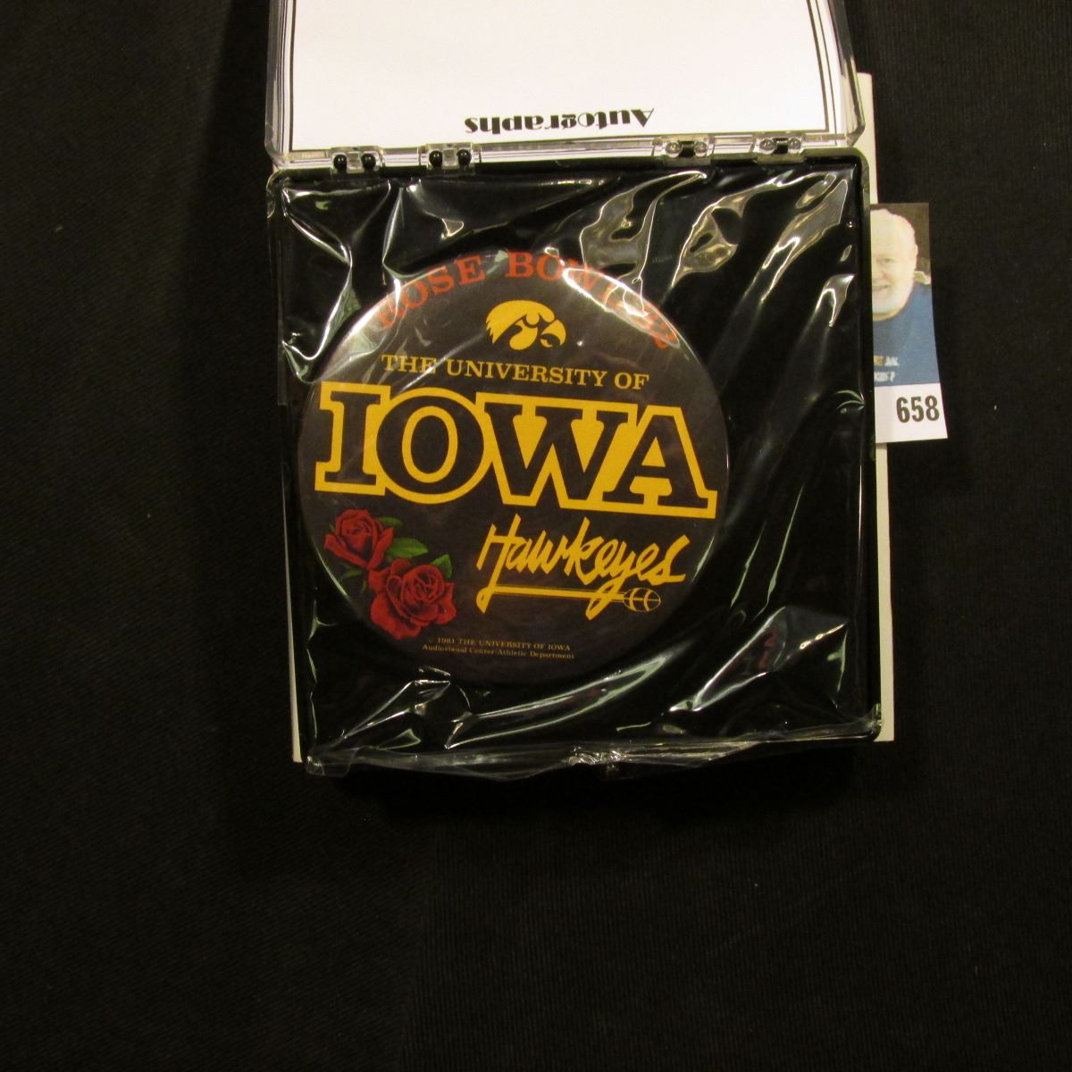 "Commemorative 1982 Rose Bowl Button Reissue 25th Anniversary Edition" Pinback, no. 130 of 500. Doc's family says that these cost $100 each.