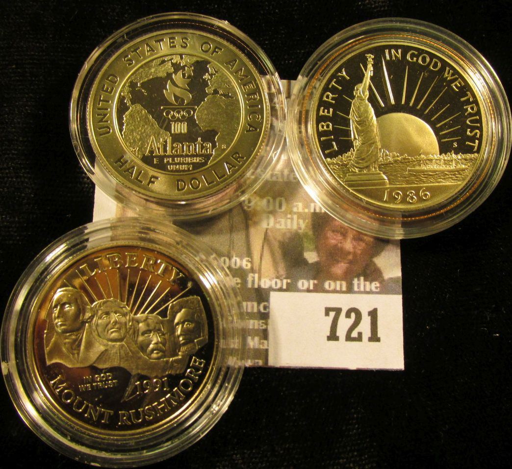 Commemorative Half Dollar Lot Includes 1995 Proof Olympic Coin, Proof 1991 Mt Rushmore, And 1986 Proof Statute Of Liberty Half Dollar