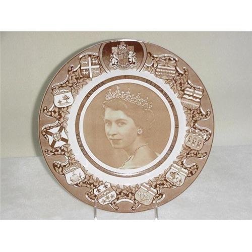Confederation Series, Canada Clarice Cliff Royal Staffordshire Ceramics Burslem, England Approved by the Council of Industrial Design 10-1/2" plate picturing Queen Elizabeth and Canadian Provinces around rim. Transfer design.