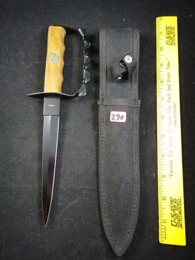 Very nice and very sharp. Wood handle with United States Marine Corps Bicentennial Medals inlaid on each side of the handle.
