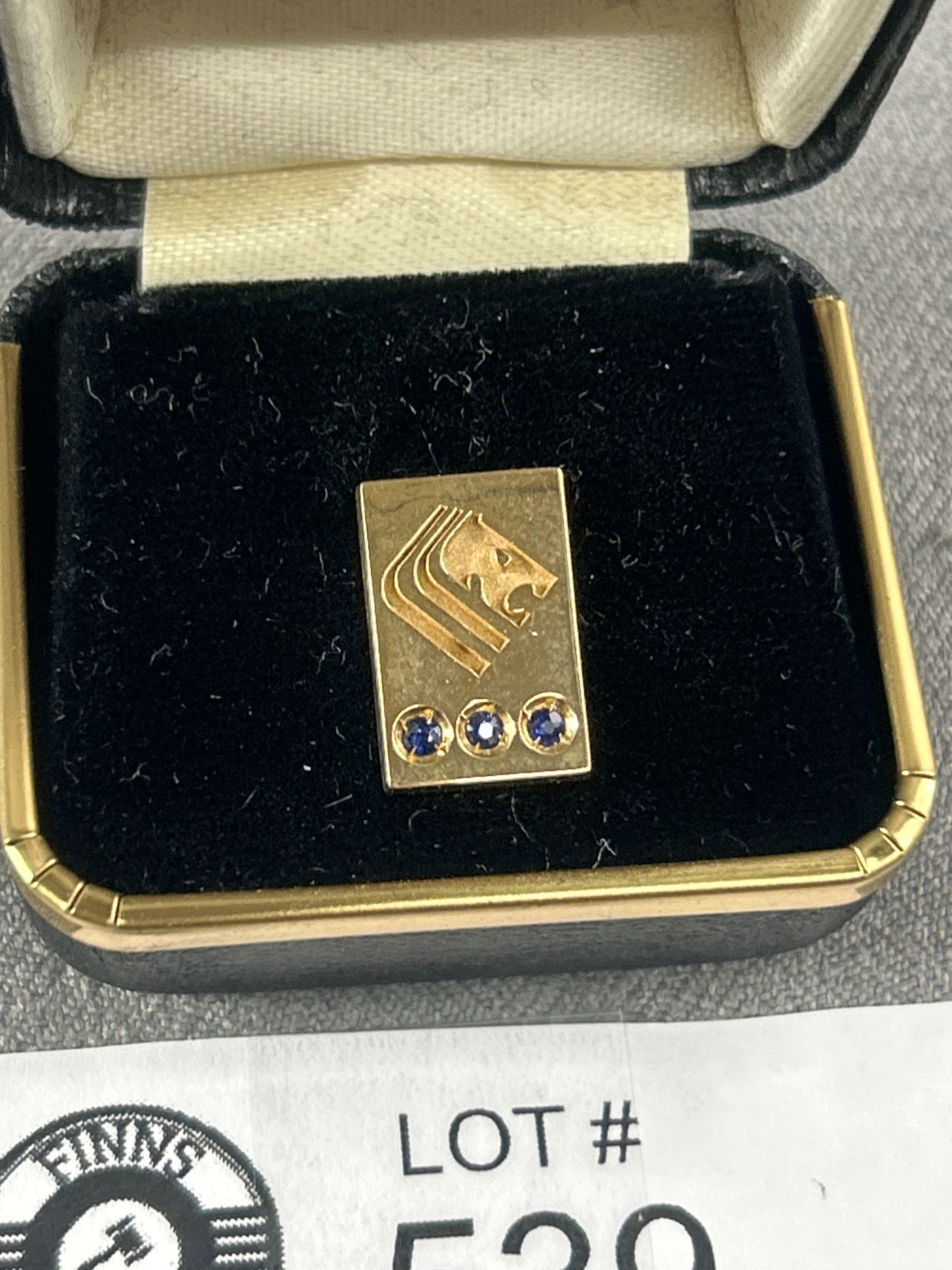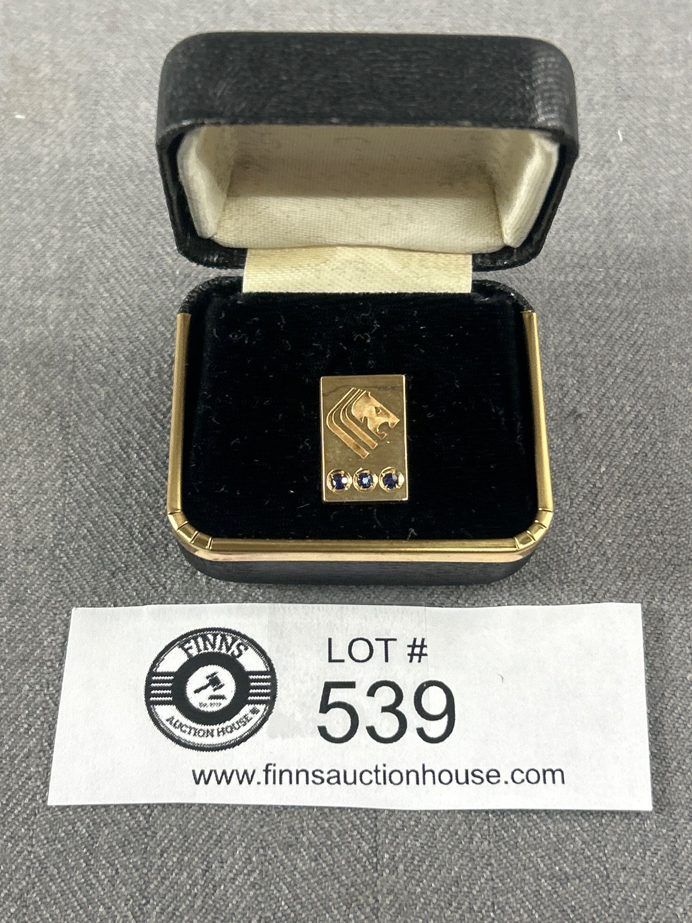 Commemortative 10K Gold Pin w/ 3 Small Saphires