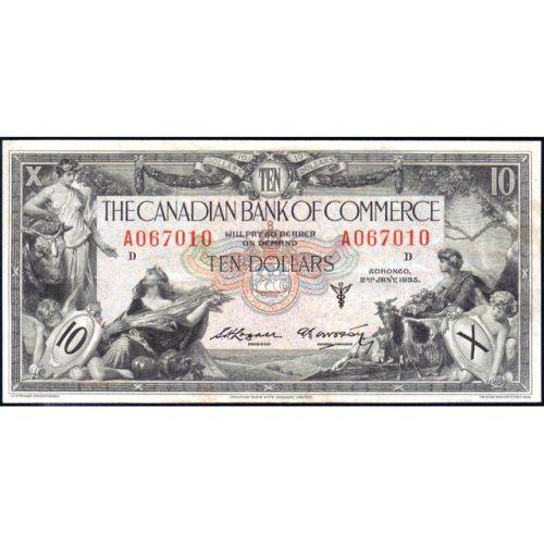 Canadian Bank of Commerce Ten Dollars 1935, Logan-Arscott, CH 75-18-08 Type 3 Signature, Serial Number A067010 D, VF-EF