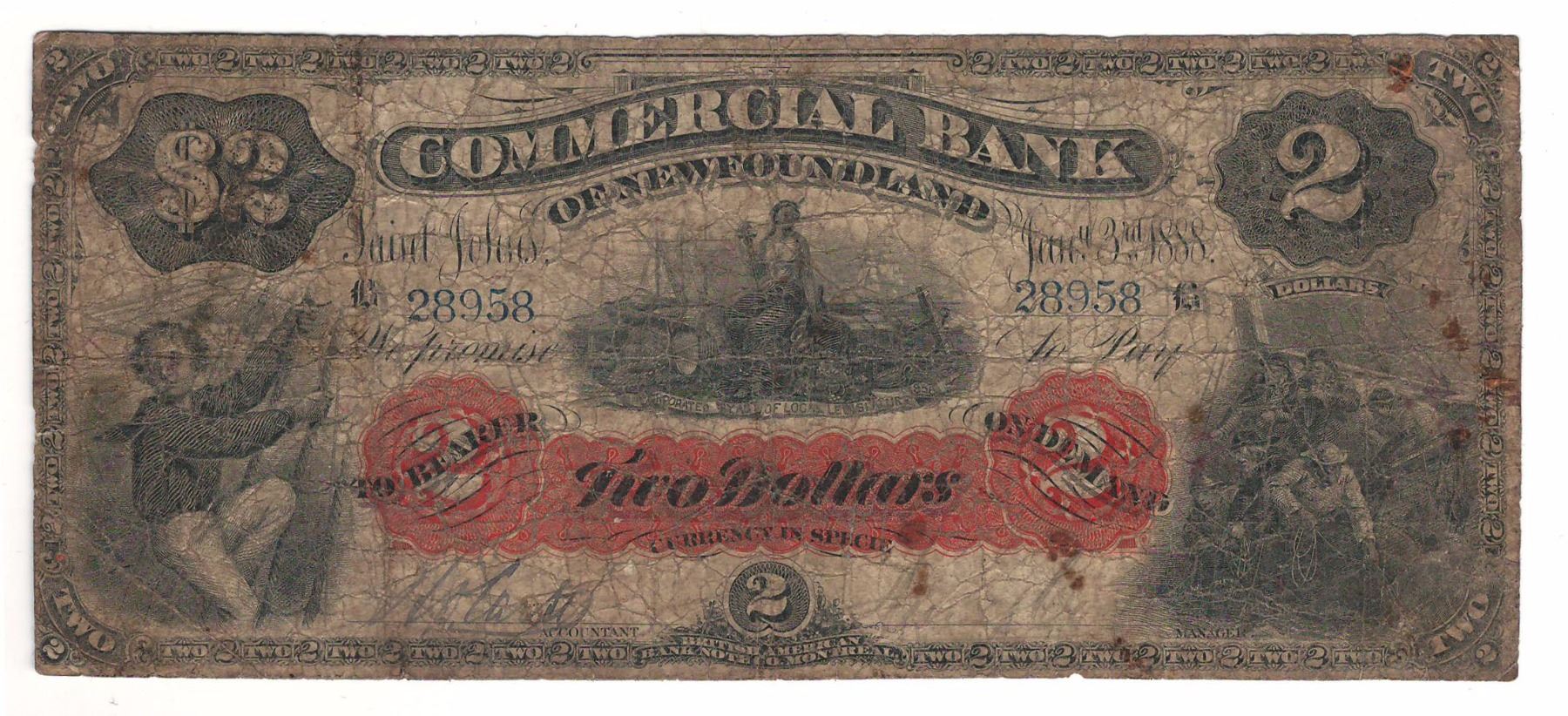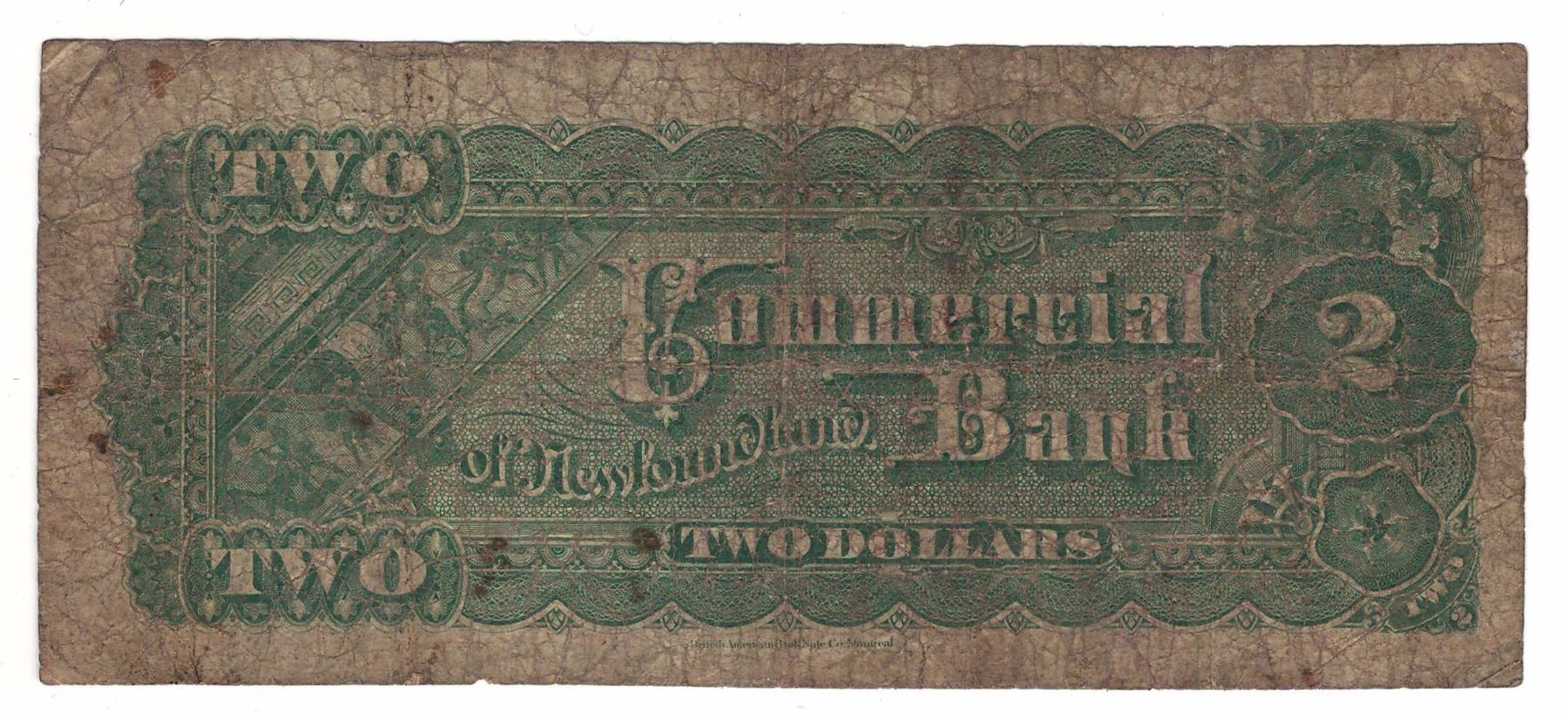 Commercial Bank of Newfoundland 1888 $2 185-18-04 VG Spots