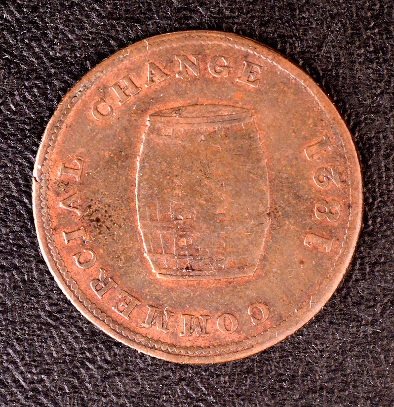 Upper Canada, Commercial Change, with Upper Canada on Cask, Br.728, UC-10, VF, strong details, but cleaned.