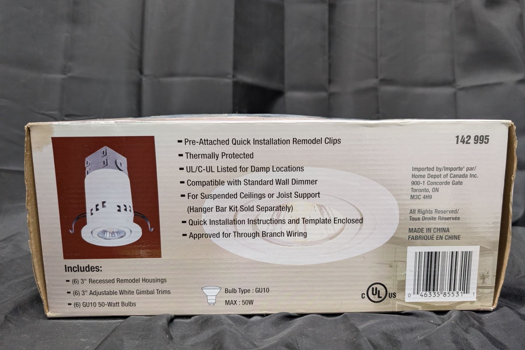 Commercial Electric Brand 3" Recessed Lighting Kit 6 Pack (New)