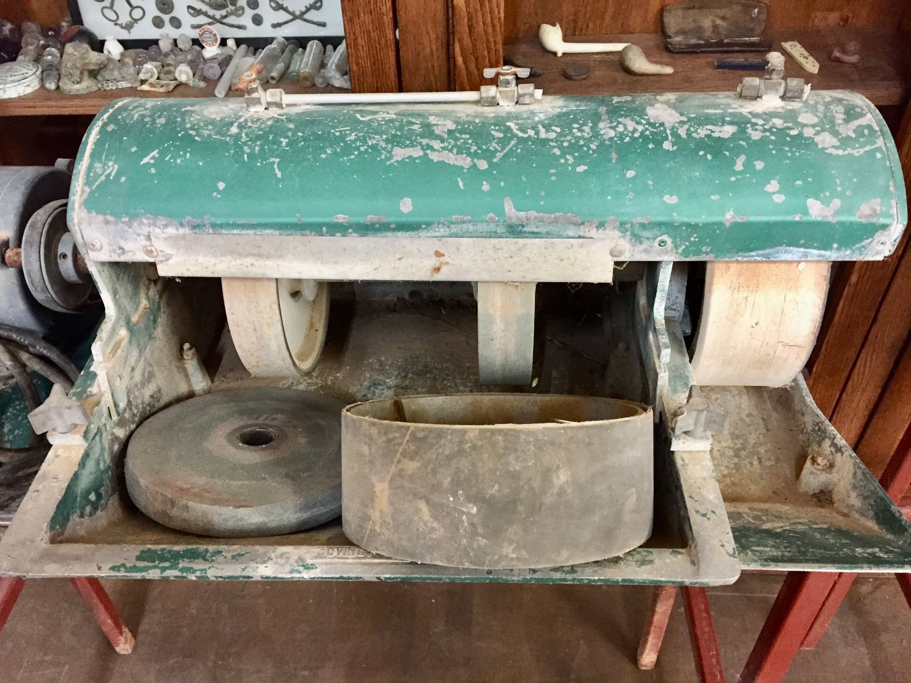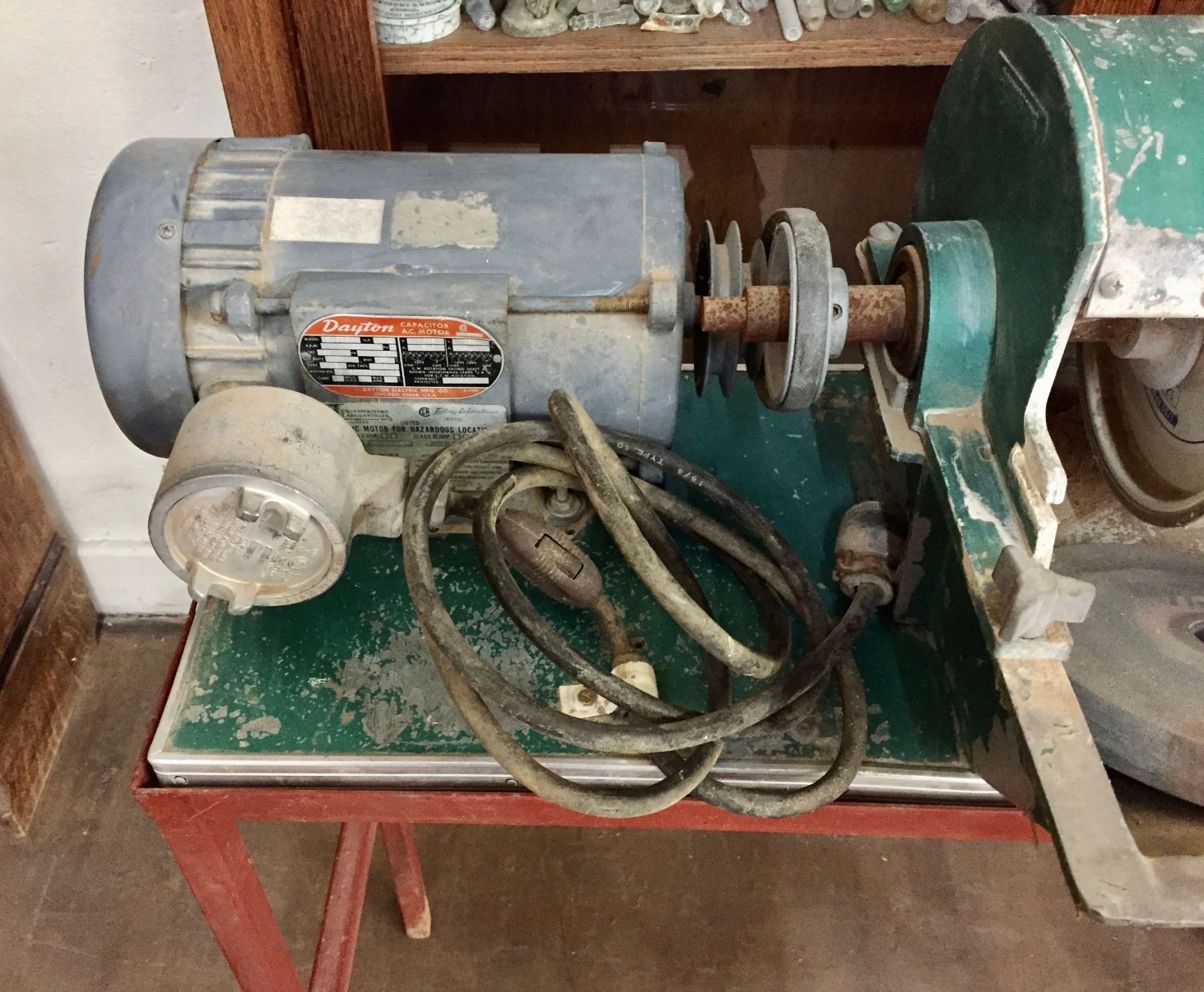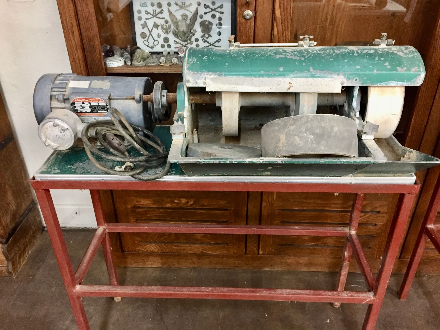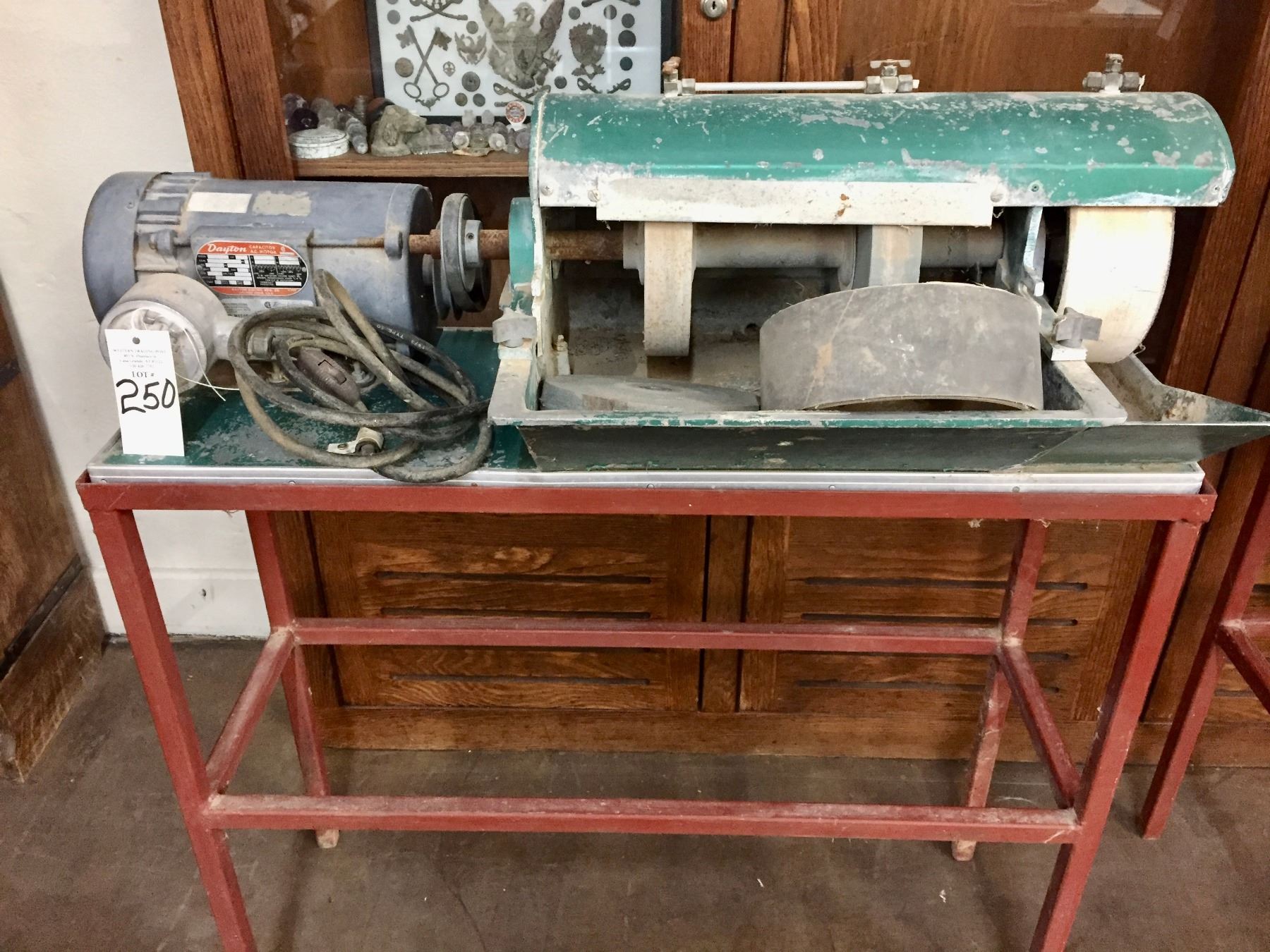 Description: Included for sale in this lot is a Commercial size Lapidary buffer with stand. Comes on when plugged in, but we did not test it out. Maker: Unknown. Approx. Age: ??? Size: 37”w x 13” deep x 42” tall (with stand). Condition: Seems pretty good for its age, wear expected. Please look closely at the pictures - they are an important part of our description. Shipping: There will be no shipping this lot. Local pickup only or arrange your own shipping.