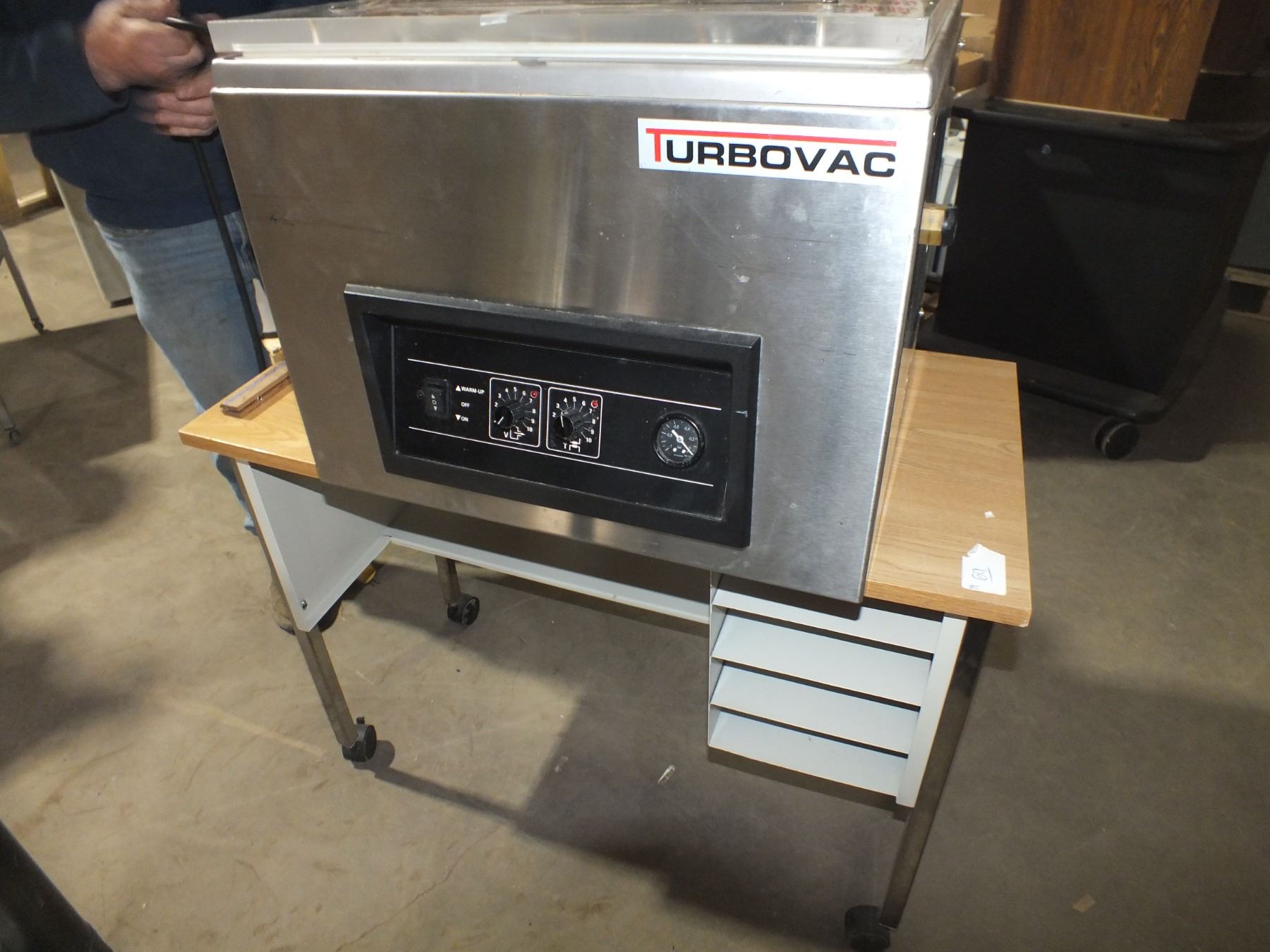 Commercial Turbo Vac System w/ Small Desk On Wheels, in working condition...used