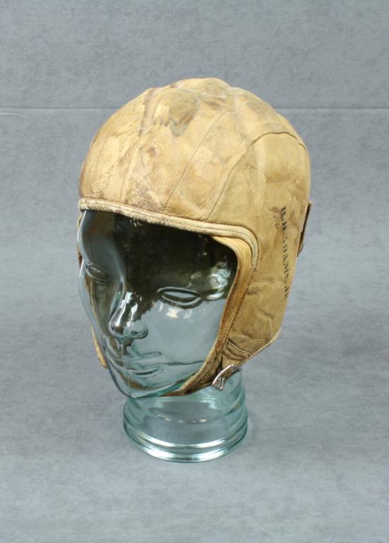 Commercial soft fleece-lined leather  aviator’s cap by Scully Bros. in overall good  condition with some scattered staining and  stenciled in ink “R. H. Adams, Jr.” on the  left side ear flap; appears to be pre-WW IIand similar to the style seen in photographs  of Charles Lindberg.  Est.:  $50-$100.