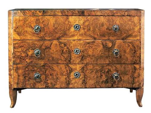 Walnut root veneered pinewood. Second part 19th century. Size: 94x126x62 cm.