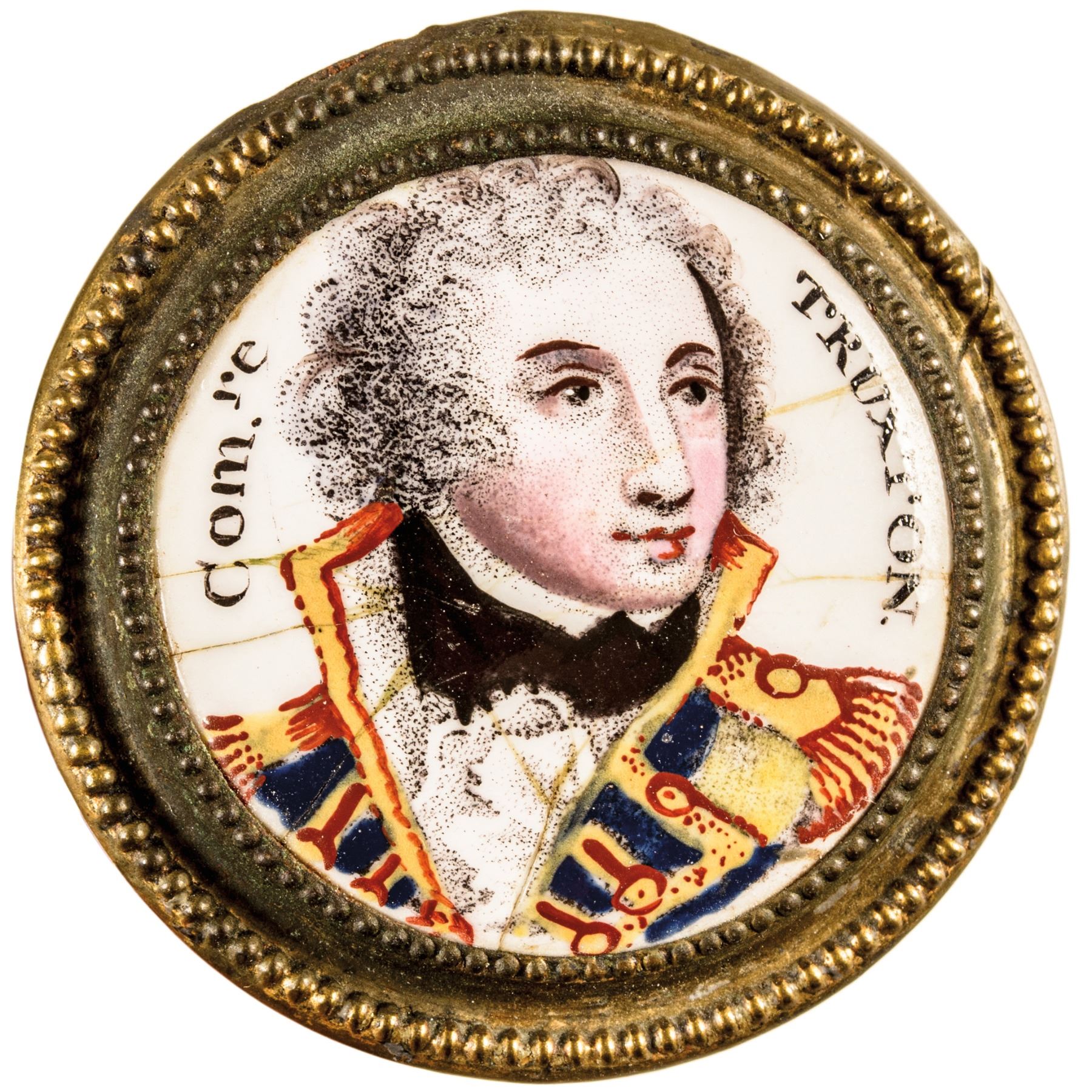 c. 1800 Federal & Quasi-War with France Era, Commodore Thomas Truxtun Portrait, Commemorative Porcelain and Brass Curtain Tieback, Choice Extremely Fine.