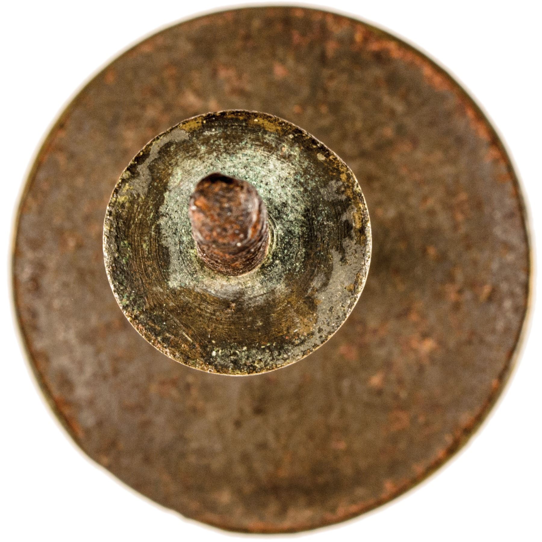 In 1794 and the likely War with France looming, Thomas Truxtun (1755-1822) was one of the first six Captains appointed by President George Washington in the newly formed United States Navy. During the Quasi-War with France Truxtun commanded the warship USS Constellation. This rare, original and historically important Porcelain and Brass Curtain Tieback has a colorful central portrait image of American Naval Officer Thomas Truxtun. This outstanding piece of Political, Military and Historical decorative porcelain measures 1.5” in diameter and is held within its original 2” diameter brass Tieback. The brass back, shaft and hand-turned iron screw end are all original and fully intact. Minor hairlines. An impressive item for display. Last example we handled was EAHA Lot #287 in our August 26, 2016 auction where it brought $1,200.