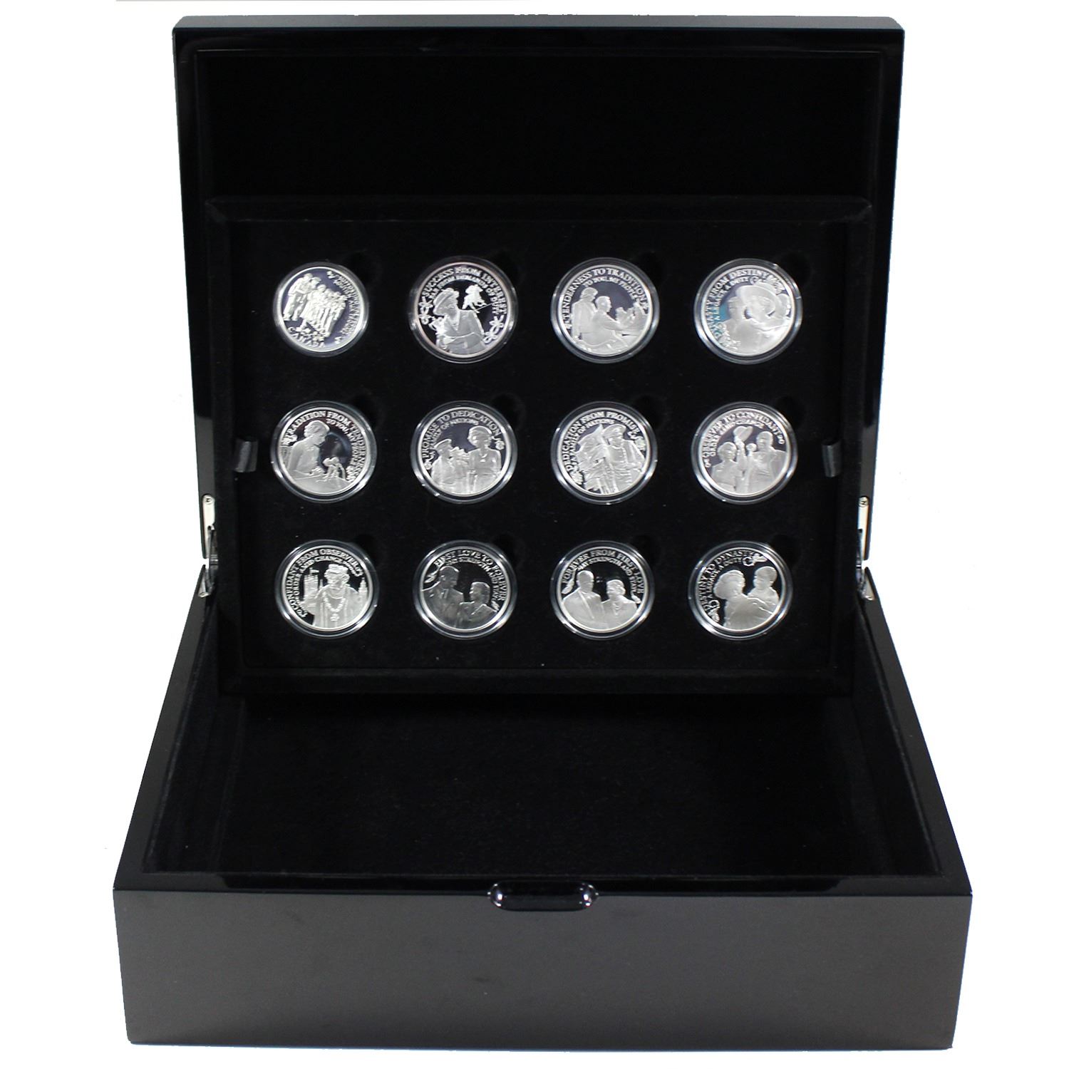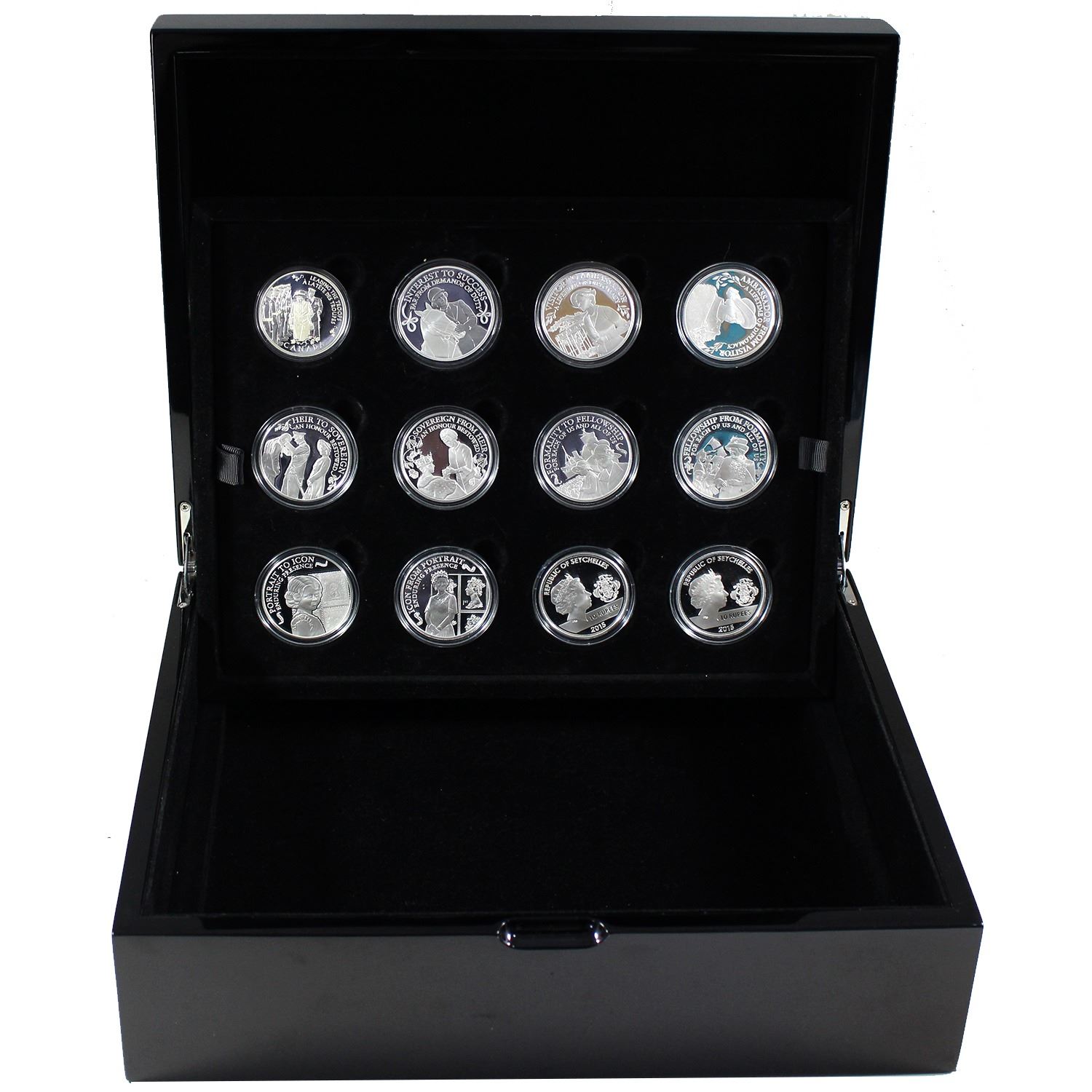 *Commonwealth 2014-2015 Elizabeth II-Princess to Monarch 24-piece Subscription Set of Sterling and Fine Silver Coins Compiled by the Royal Canadian Mint. There are 24 coins in this collection, issued by 12 Commonwealth countries. Each country released two unique coins for the collection, each reflecting Queen Elizabeth II's life as 'Princess' and 'Monarch'. 22x Sterling Silver and 2x Fine Silver Coins. Comes in deluxe display case with RCM Issued COA included. Pale golden tones. Some writing on COA and accompanying letters.