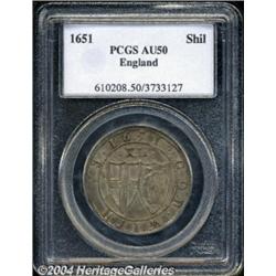 Commonwealth Shilling 1651. S-3217. Sun mintmark. AU50 PCGS. English and American grading systems differ widely, and especially in the hammered series, of which this coin is a part. What PCGS see is a lot of detail and some luster. The British grade would be EF. This coin has a pleasant old "dirty silver" look, meaning it has not been cleaned. It's also exceptionally round and free of marks. Overall, a nice example, better than most seen these days in the UK.From the Craig Haller Collection. Important notice: Heritage usually auctions material at the rate of 200-250 lots per hour. On some occasions eBay Live bid software or the Internet may not be able to keep up with the pace of the auction. We recommend placing a realistic absentee bid now as insurance to avoid disappointment. Occasionally the auctioneer may eliminate or reject an eBay Live bid, and the auctioneer may also reopen a lot after the close of the eBay live bidding (usually because we missed an audience bid), and may reject your bid even if it shows you as the winning bidder. By bidding via eBay Live, you agree that Heritage may award the lot to another bidder at its sole discretion under the circumstances described above or any other reasonable circumstances. Also please note that all Heritage lots purchased through eBay Live carry a 20% Buyer's Premium. Please make sure you read the Terms and Conditions before you bid.