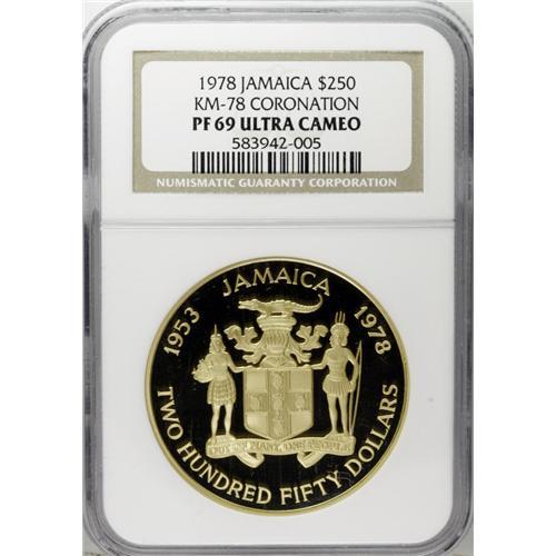 <B>Commonwealth gold 250 Dollars (1978), </B></I>KM78, Proof 69 Ultra Cameo NGC, struck to commemorate the 25th year of Elizabeth II's reign.<BR><BR><b>Shipping:</b> Coin/Currency (<a target="_blank" href="http://www.heritageauctions.com/common/shipping.php">view shipping information</a>)