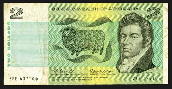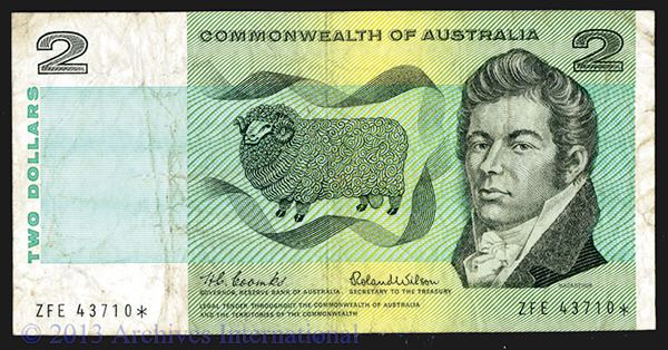Australia, ND (1966), $2, P-38ar R81S, Issued banknote, S/N ZFE 43710*, Signatures Coombs - Wilson, PMG graded Very Fine 25, Attractive note for grade. Scarce with Star.