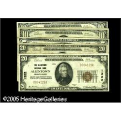 <B>Commonwealth of Pennsylvania 1929 National Bank Notes</B></I><BR>Allentown, PA - $20 1929 Ty. 1 Allentown NB Ch.#1322 Extremely Fine<BR>Nazareth, PA - $20 1929 Ty. 1 Second NB Ch.#5686 F-VF<BR>Oxford, PA - $5 1929 Ty. 1 NB of Oxford Ch.#728 Very Fine<BR>Pottstown, PA - $10 1929 Ty. 1 National Iron Bank Ch.#3494 Fine<BR>Washington, PA - $10 1929 Ty. 1 Citizens NB Ch.#3383 About Uncirculated.<BR> 5 notes Lot:16977