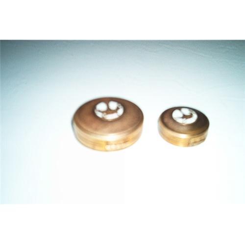 Here are two, vintage, Cara Nome Brass Compacts. The largest contains rudge with the original pad. The smaller compact contains pressed lipstick, which has never been used. A matched set. Beautiful brass compacts with decorative white enamel painted background with a brass figure on the lids. The lids have a round circle with a bouquet of flowers designed out of brass and white enamel paint in the background. Both Compacts are signed on the front edges with Cara Nome-Langlois, New York. Bottom of each compact is also beautifully decorated. The largest compact measures 1 5/8 inch in diameter and 1/4 inch thick. The smaller compact measures: 1/18 inch in diameter and is also 1/4 inch thick.