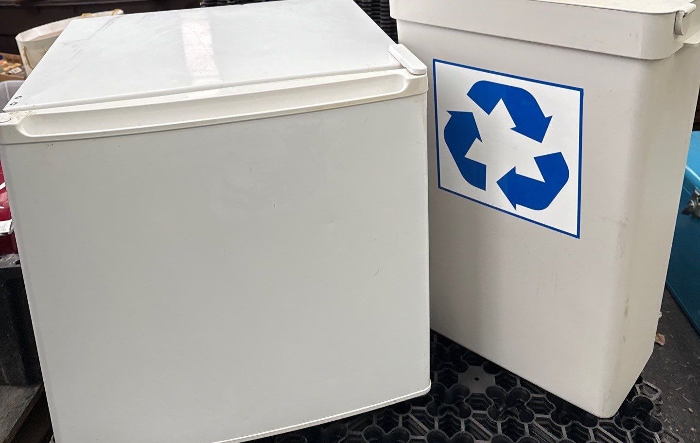 Compact Mini-Mini Fridge w/ Recycling trash Style Container (No Name on Appliance)