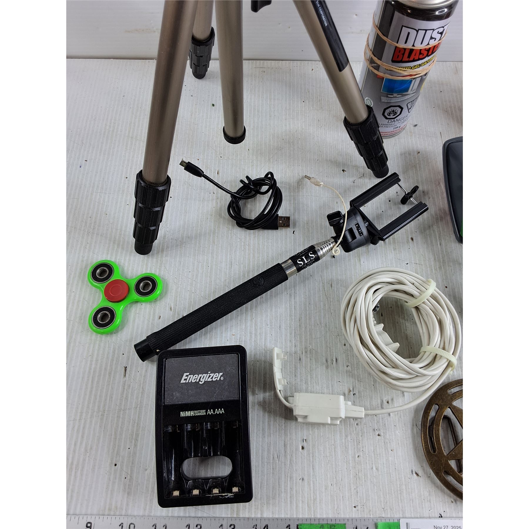 Compact Tripod, AAA Battery Charger, Tape Gun, Belt Buckle, Fidget Spinner, Misc