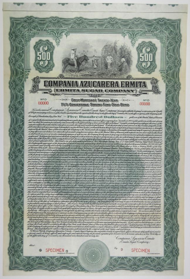 Compania Azucarera Ermita, "Ermita Sugar Co.", 1922 Specimen 7% Gold Bond.