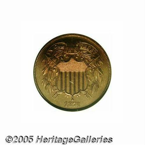 <B>Complete 14-Piece 1873 Proof Set<1C>.</B></I> In the late 19th century, proof sets from the middle and latter part of that century were fairly common and were widely collected. Many of the premier collections sold until the 1950s contained runs of original sets. After that time, the value of the individual coins surpassed the collectibility of the sets; thus, most original 19th century proof sets have been broken up and the coins sold individually over the past 50 years. Since that time an occasional collector will attempt to assemble a proof set of a given year, but of course, such a set is a put-together job and there is no chance of reassembling all the coins that were in an original set. It is our belief that this is an original set that was purchased in the early part of 1873. The three cent silver and half dime both have a pronounced bluish cast as do the Closed 3 No Arrows dime, the Closed 3 No Arrows quarter, the Closed 3 No Arrows half, the Seated dollar, and the Trade dollar. The Arrows dime, quarter, and half dollar have a distinctive reddish cast, and we believe that these three pieces were added at a later date in order to provide both Closed and Open 3 examples for the set. The addition of these three coins certainly enhances the interest and desirability of the set overall.<BR> The historic value of this proof set is undeniable. The year was a pivotal one in 19th century numismatics for four reasons. First, the Mint Act, or so-called "Crime of '73," eliminated odd denomination coins such as the two cent piece, the three cent silver, and half dime. Second, the Mint Act also converted the weight of U.S. coinage to the metric system, thus slightly increasing the weight of the dime, quarter, and half dollar. Third, as a result of the slight increase in weight, arrowheads were added on each side of the date to the dime, quarter, and half. Finally, in a completely unrelated development, the knobs on the 3 in the date on many of the coins were so pronounced that they resembled an 8. Adjustments were made early in the year and several denominations are known today with both Closed and Open 3 date variants. This is perhaps the most important and intriguing 19th century proof set we have ever handled, and we hope the new owner will keep it intact for future generations to enjoy and appreciate. Included are:<BR><BR><B>1873 Cent Closed 3 PR65 Red and Brown NGC.</B></I> Only struck with the Closed 3 date as a proof, this example is deeply reflective and has a speckled overlay of brown patina, which greatly subdues a horizontal scratch in the center of the obverse.<BR><BR><B>1873 Two Cent Piece PR65 Red and Brown NGC.</B></I> Final year of issue for the two cent piece, this date is known in both original and restrike versions. The restrikes were made much later than originals. Unlike many 1873 two cent pieces, this coin has deeply mirrored fields. The surfaces are evenly mellowed from full red, but not by much. Frankly, there is no actual browning present on this lovely piece, just deeper shades of red.<BR><BR><B>1873 Closed 3 Three Cent Silver PR66 NGC.</B></I> An outstanding, deeply mirrored proof that appears to also have considerable mint frost over the devices. Thalo blue toning is enlivened even more by the powerful reflectivity in the fields.<BR><BR><B>1873 Closed 3 Three Cent Nickel PR65 Cameo NGC.</B></I> As with the Indian cent of this date, the three cent nickel proofs were all struck from Closed 3 dies. While mostly brilliant, close inspection reveals just the slightest overlay of patina and there is a moderate overlay of mint frost on the devices that renders a noticeable cameo effect on each side.<BR><BR><B>1873 Half Dime PR65 NGC.</B></I> Scarcer than its mintage of 600 pieces would suggest, as many proof 1873 half dimes were melted on July 10, the bullion used for recoinage into other denominations. Struck from heavily striated dies, the fields show unfathomable depth of mirrored reflectivity and enliven the turquoise and gray toning seen over each side.<BR><BR><B>1873 Shield Nickel PR66 NGC.</B></I> Again, like the cent and three cent nickel, the Shield nickel is only available in proof format with a Closed 3 in the date. This is a brilliant coin that was struck from the usual, slightly granular planchet that is often seen on early nickels. A few specks of carbon are evident when one views the surfaces with a magnifier. Nicely mirrored for a Shield nickel.<BR><BR><B>1873 No Arrows Dime PR66 NGC.</B></I> Like the half dime, only 600 proofs were struck and an unknown number were melted as unsold in July. This is a sparkling, deeply mirrored proof that has turquoise and lilac-gray toning on the obverse, while the reverse shows golden-rose and blue toning on the reverse.<BR><BR><B>1873 Arrows Dime PR65 NGC.</B></I> First year of the short-lived Arrows type, only 800 proofs were struck. This is a lovely Gem proof that has deeply reflective proof fields that serve to enhance the mottled purplish-rose and marginal blue patina. An important and highly collected 19th century type coin.<BR><BR><B>1873 Closed 3, No Arrows Quarter PR64 Cameo NGC.</B></I> Like the No Arrows dimes, those still on hand in July were melted, leaving an undetermined number of proofs distributed to collectors out of the original mintage of 600 pieces. This is an outstanding proof, especially for the grade. The fields show unfathomable depth of reflectivity and the devices are obviously heavily frosted, this effect being noticeable through the depth of toning on each side. The obverse is bright thalo blue with an occasional touch of lilac, while the reverse is golden-russet with cobalt-blue coloration around the margin.<BR><BR><B>1873 Arrow Quarter PR64 NGC.</B></I> Only 540 proof quarters were struck of the Arrows design. This is an attractive near-Gem example that shows a few light hairlines (with magnification). Each side shows speckled reddish-golden toning, the reverse being several shades deeper i