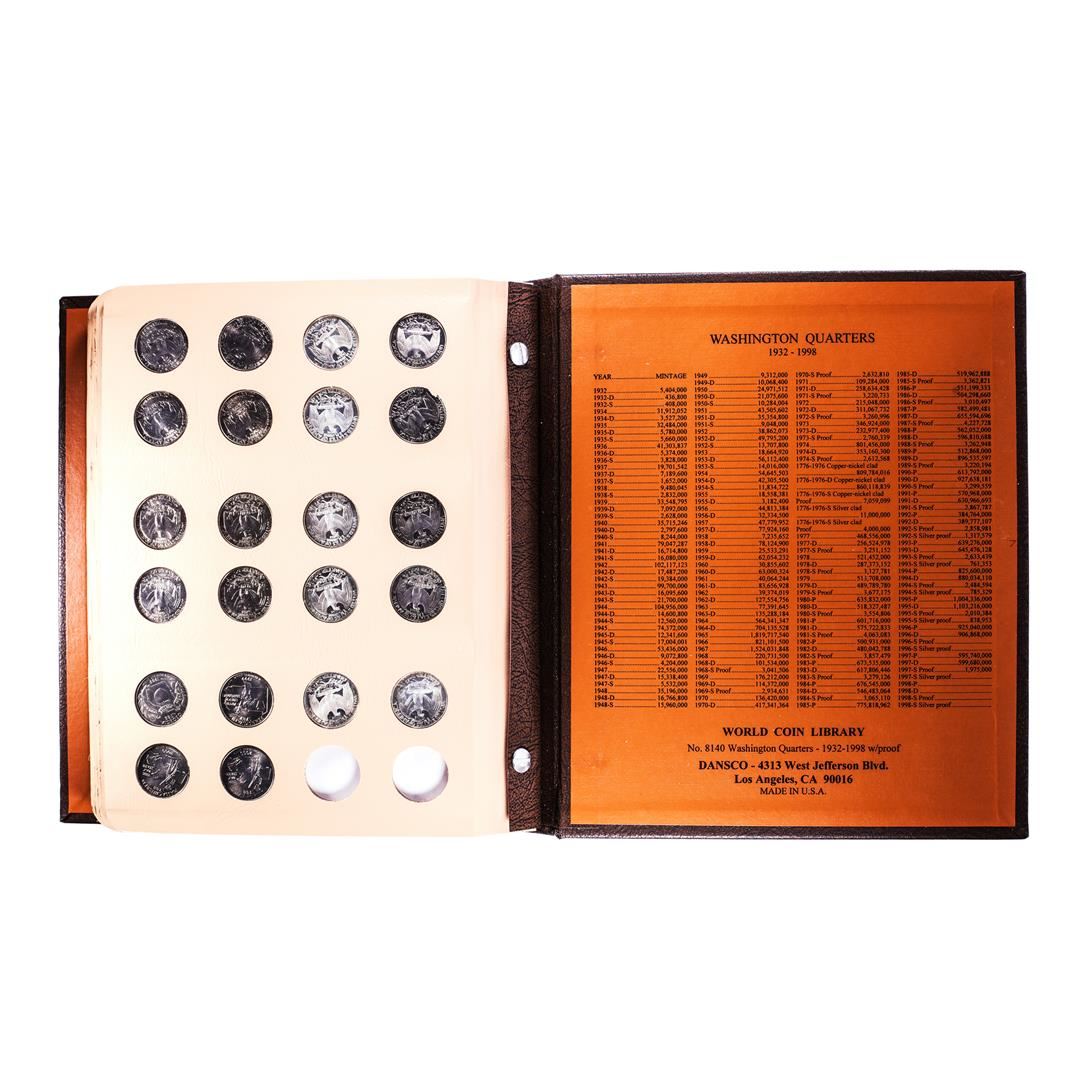 One Complete 1932-1998 Washington Quarter Coin Set in Dansco Book.