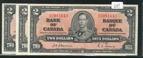 Complete 1937 $2 signature set. Includes a BC-22a "Osborne", BC-22b "Gordon", and 22c "Coyne". Grades vary from EF to EF+