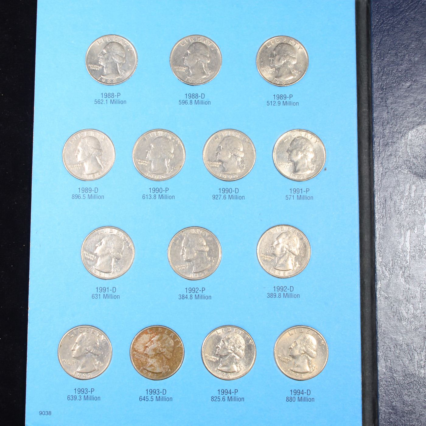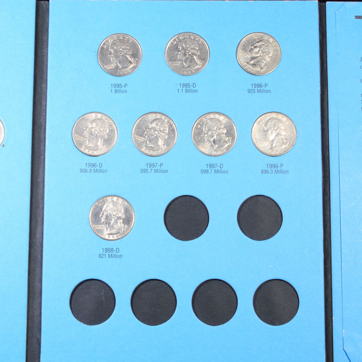 Complete 1988-1998 Washington Quarter Book 22 Coins. Complete 1988-1998 Washington Quarter Book 22 Coins. In A Whitman Folder.