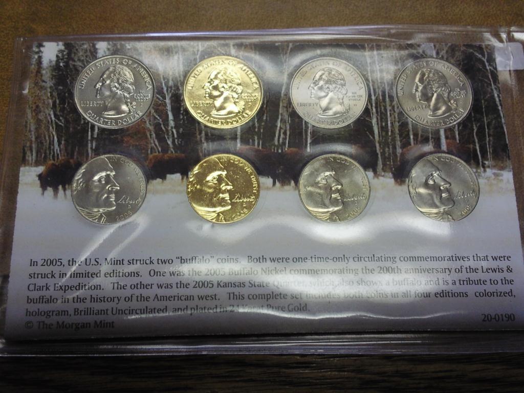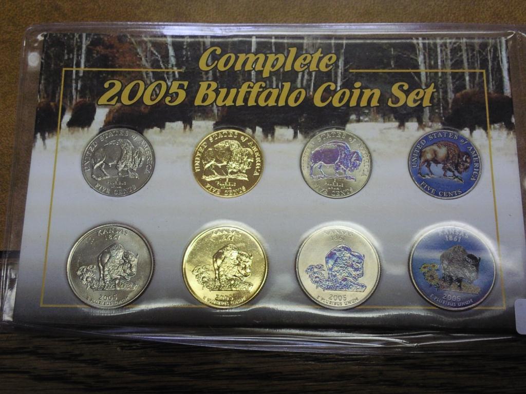 4 Buffalo Nickels And 4 Kansas Quarters UNC, Gold Plated, Holographic And Colorized