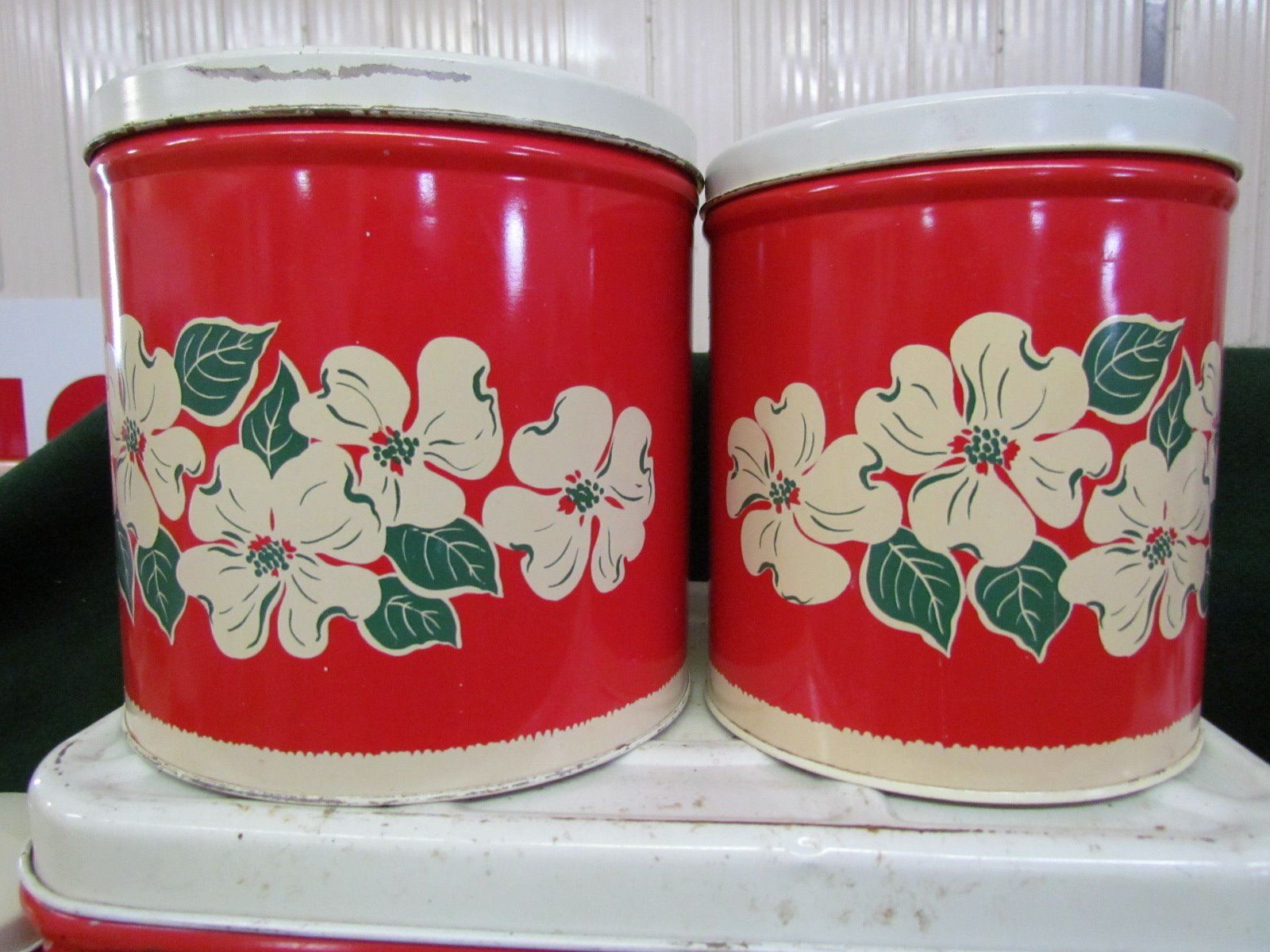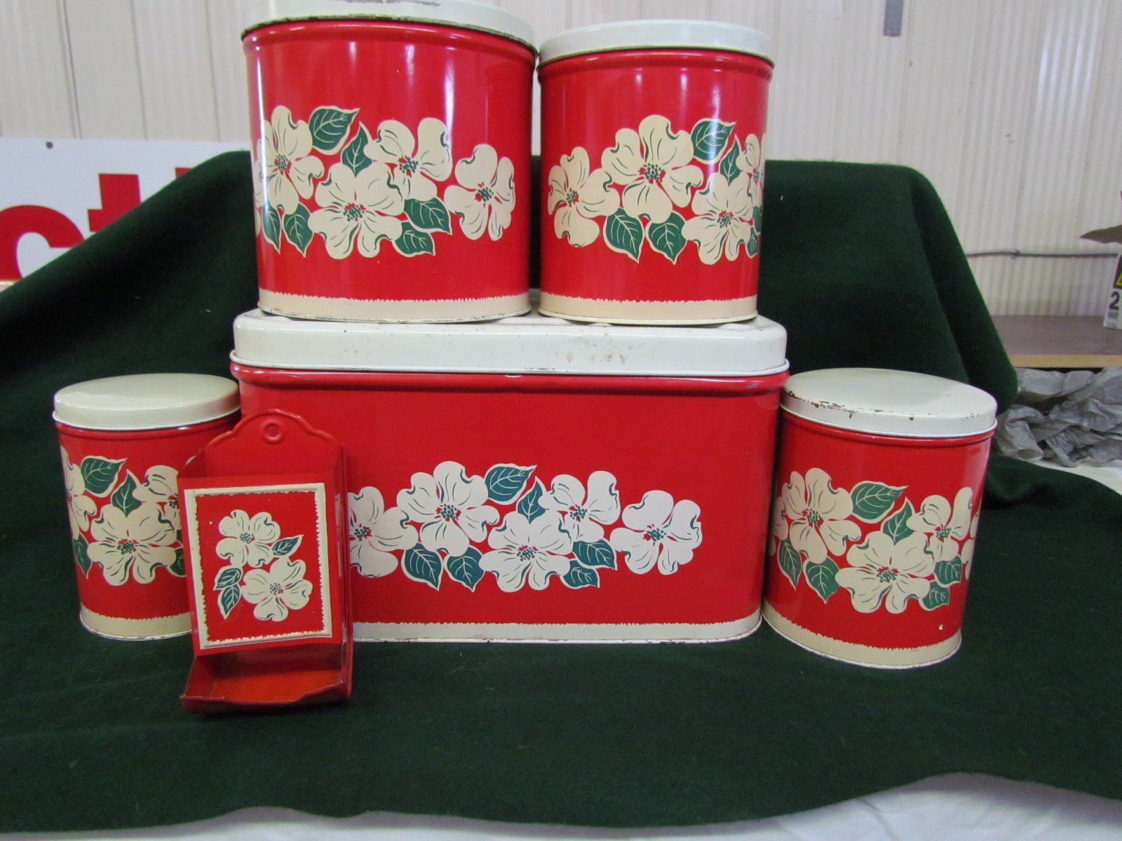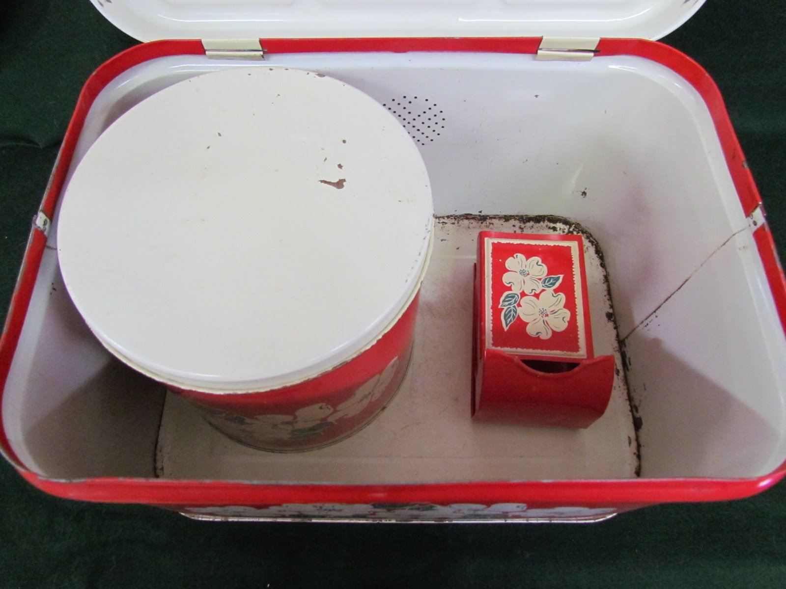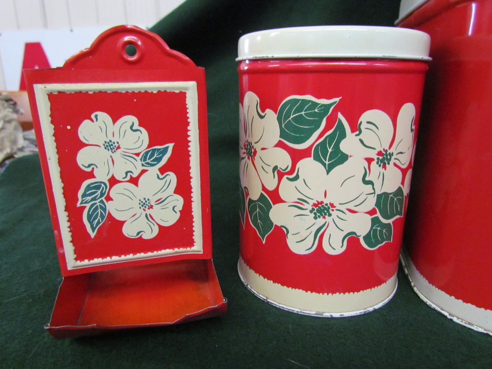 Complete 5 piece bread box and canaster set with match box holder