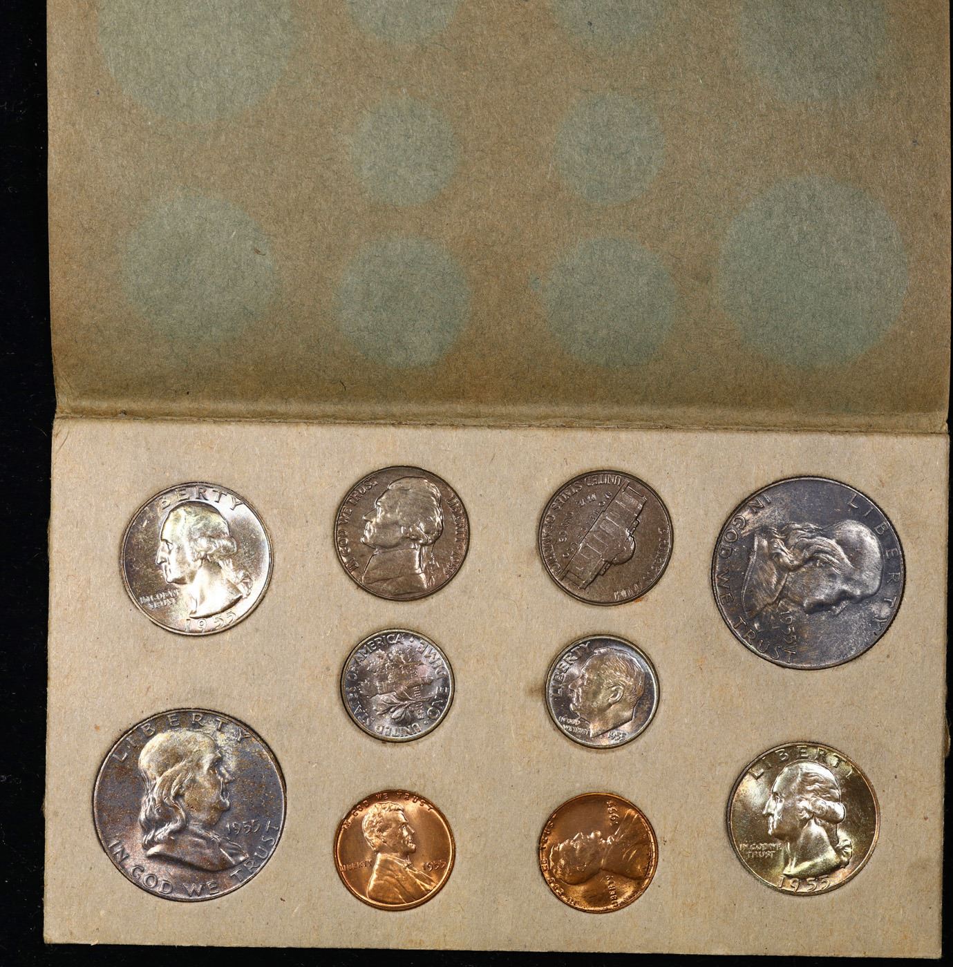Complete All Original 1955-p Mint Set On Original Cardboard. The Set is all original and the coins are all very nicely Toned