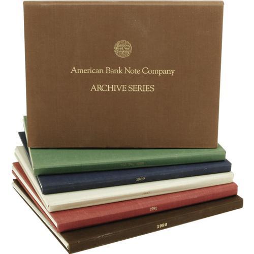 <B>Complete American Bank Note Archive Series.</B></I> This is the complete six volume set, which was issued one per year from 1987 through 1992. This annual series of intaglio engravings was printed on acid-free cream-colored paper stock. Each set includes twelve 8 1/2" by 11 1/4" pages of vignettes with four to ten vignettes per page. Important historical information about each vignette is included with each volume. A few titles of the sheets are duplicated among the series, but each of the over 500 vignettes are different. The 1988 set contains the much sought-after brown ABNCo intaglio imprint of a 1919 Czechoslovakian note that makes it "complete" and original.<BR><BR><b>Shipping:</b> Coin/Currency (<a target="_blank" href="http://www.heritageauctions.com/common/shipping.php">view shipping information</a>)