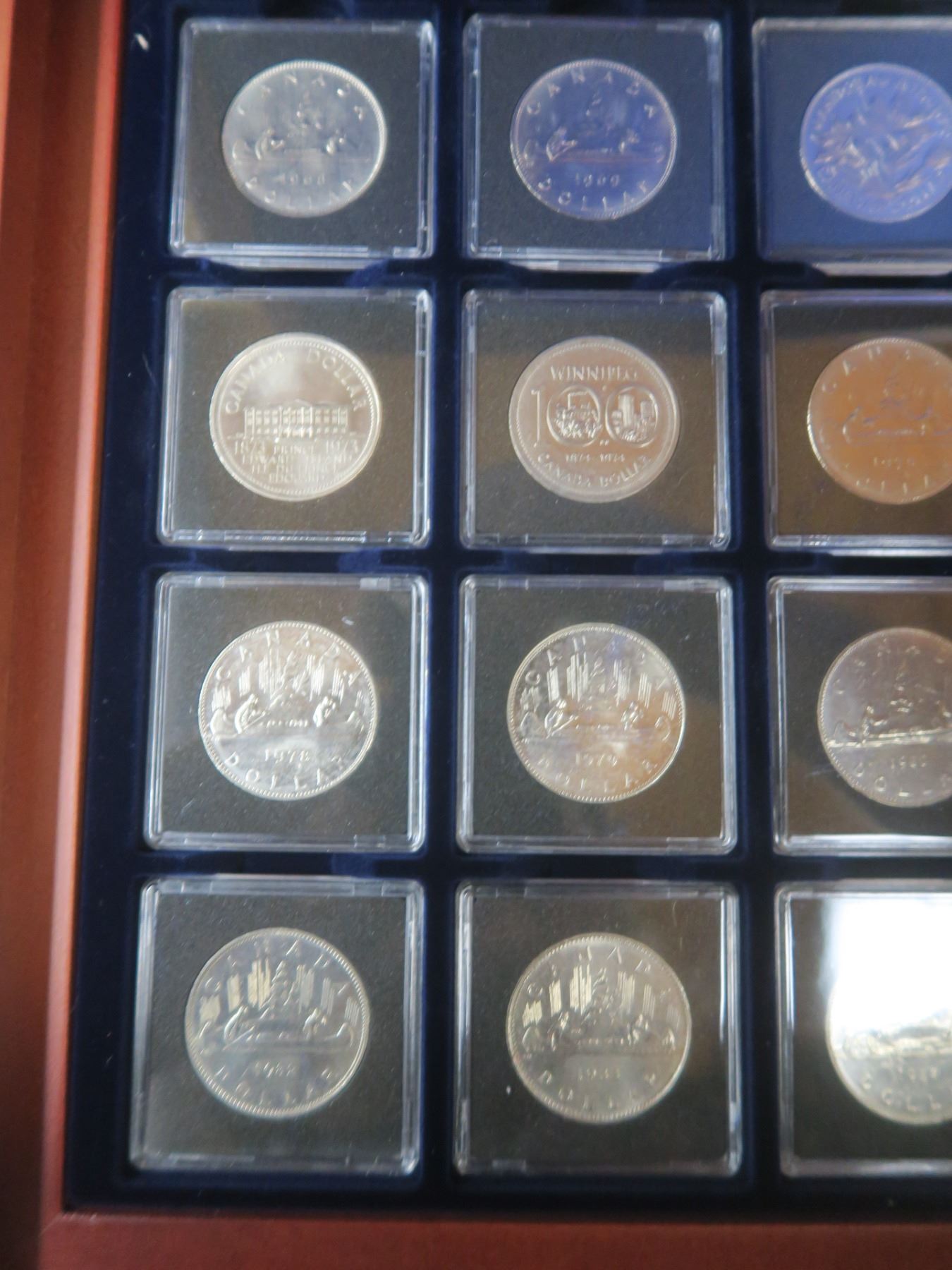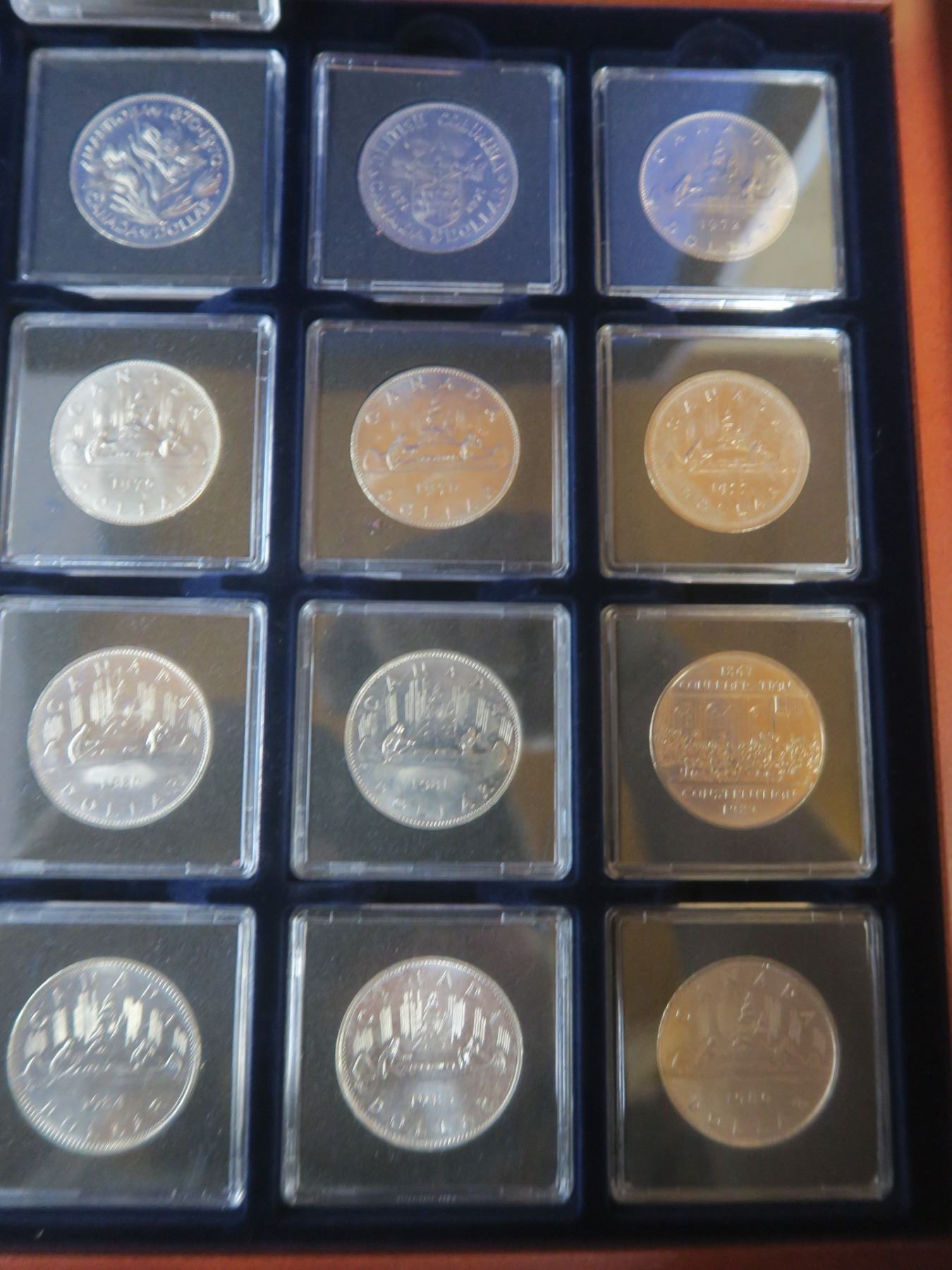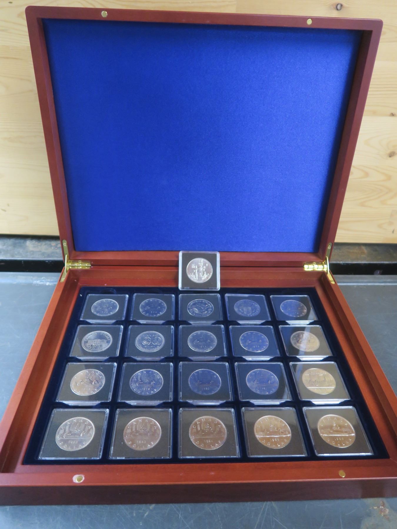 Complete Canadian Nickel Dollar Collection. Set of 21 dated 1968 – 1986. Housed in a fancy Lighthouse case with 1 tray.