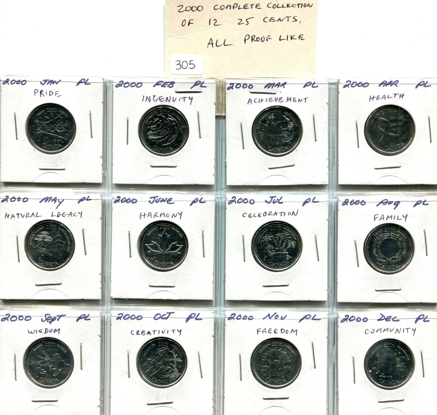 Complete Collection of 12 Canadian 2000 Millennium 25 cents. All are Proof Like. Nice.