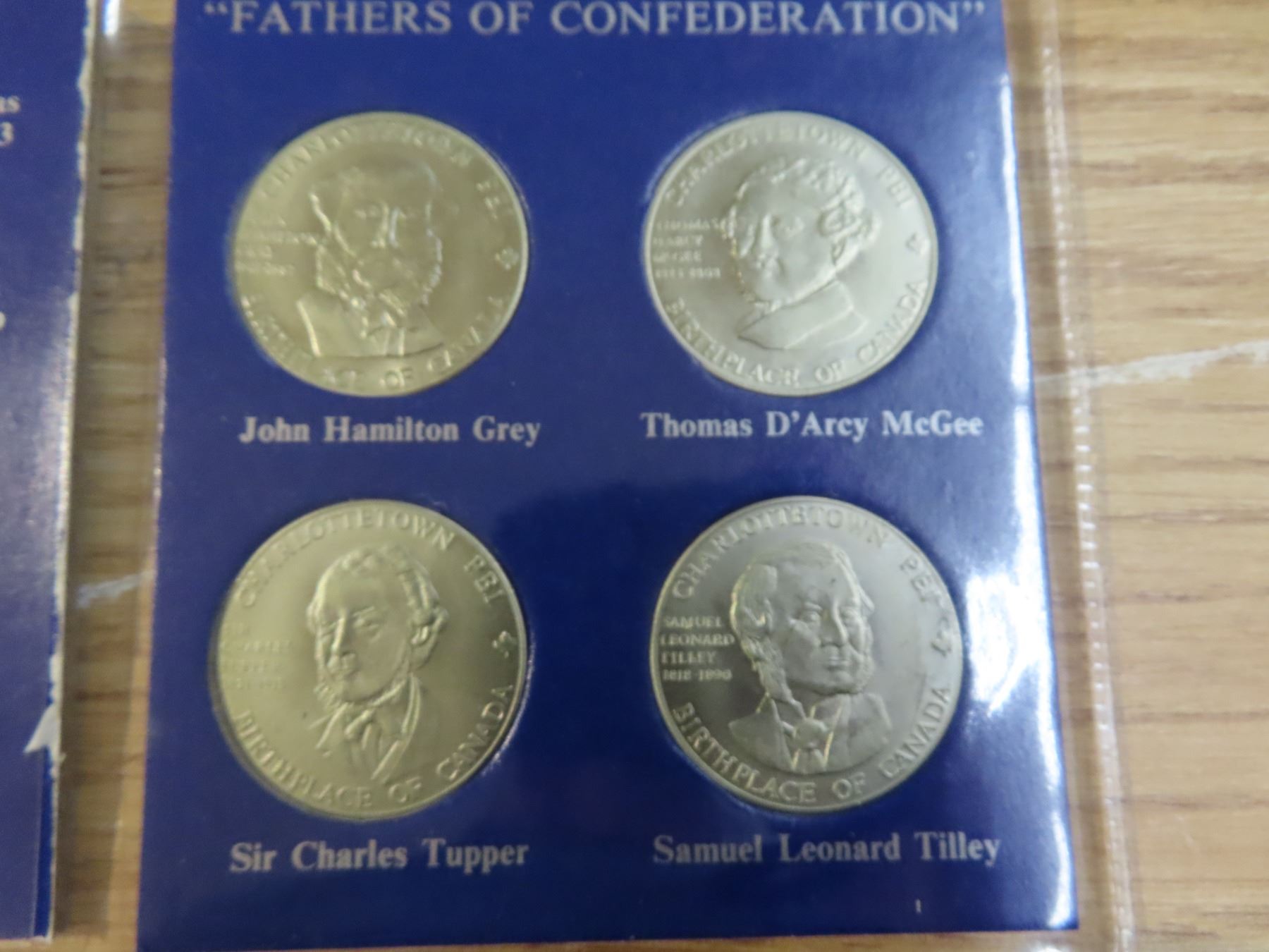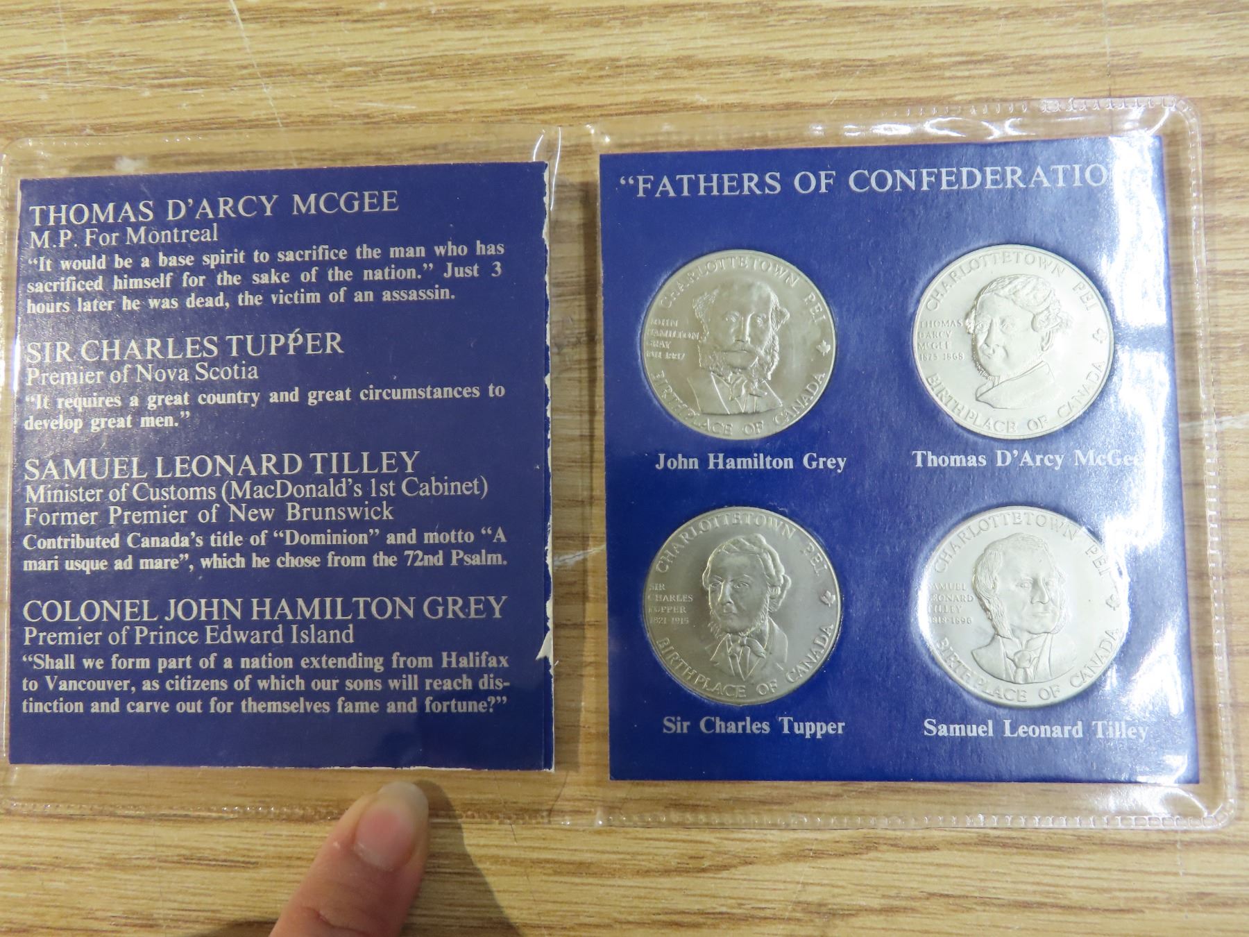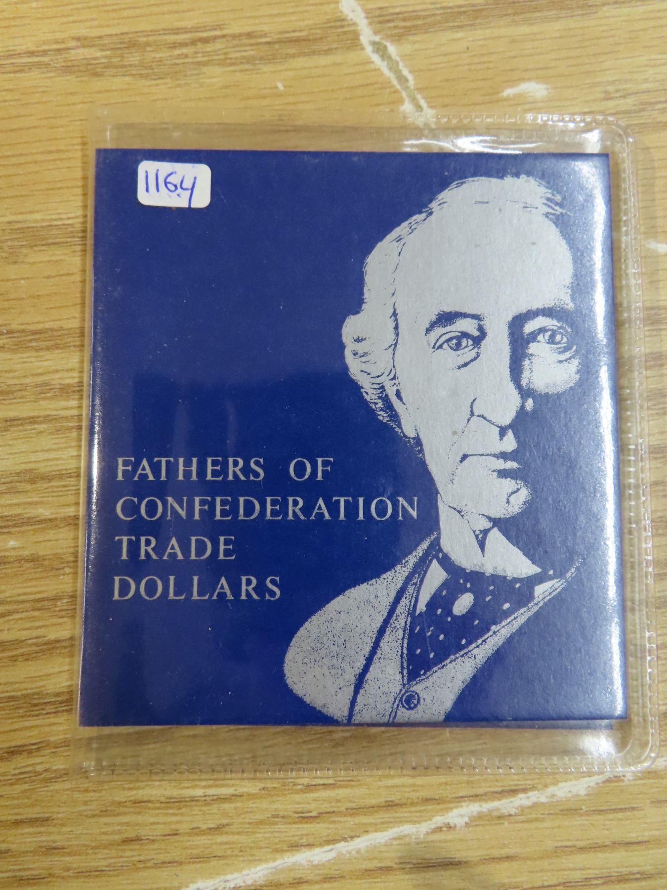 Complete Collection of 4 Fathers of Confederation Trade Dollars issued by the Greater Charlottetown Area Chamber of Commerce in 1981. Includes Thomas D’Arcy McGee, Sir Charles Tupper, Samuel Leonard Tilley & Colonel John Hamilton Grey. Housed in its original folder of issue.