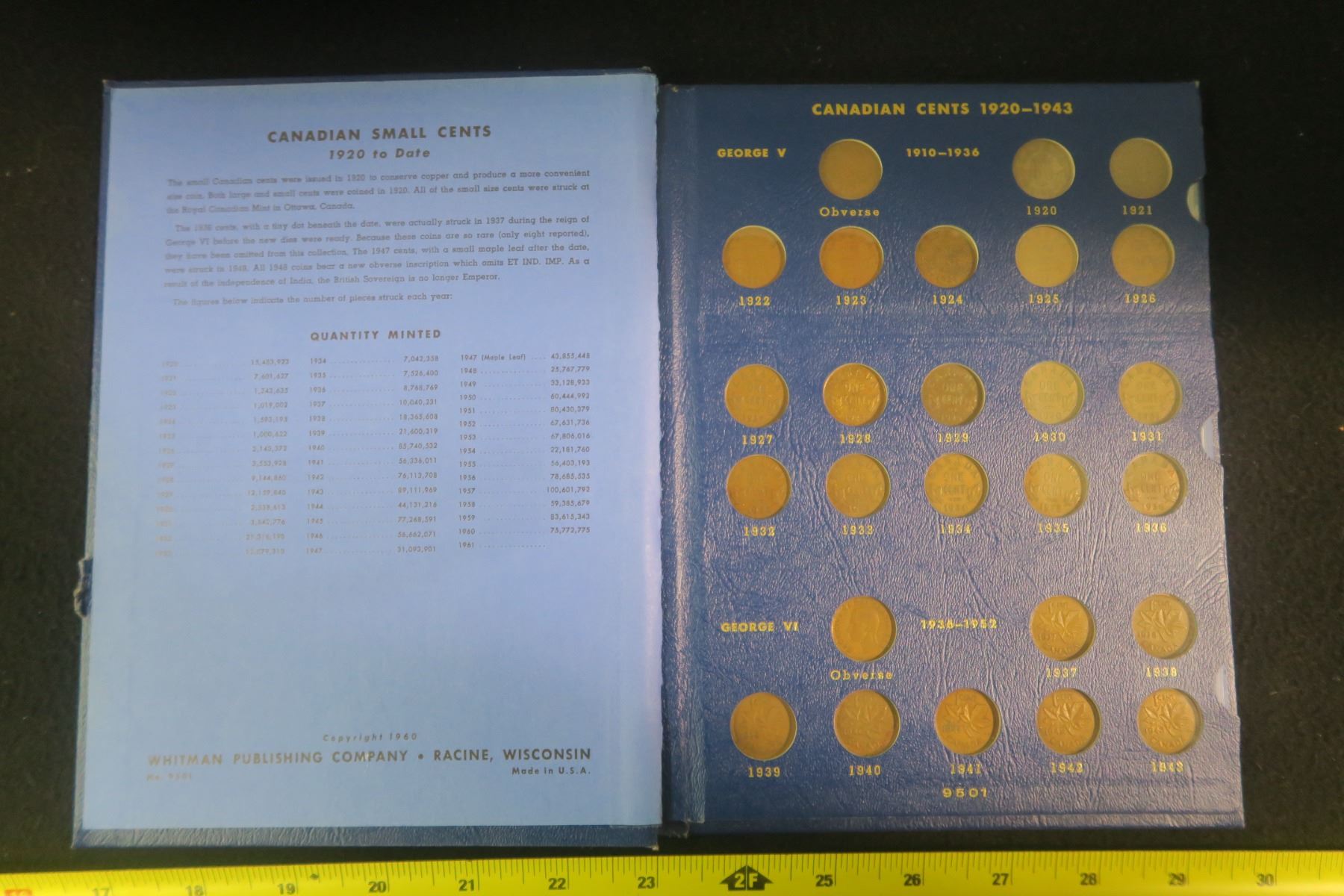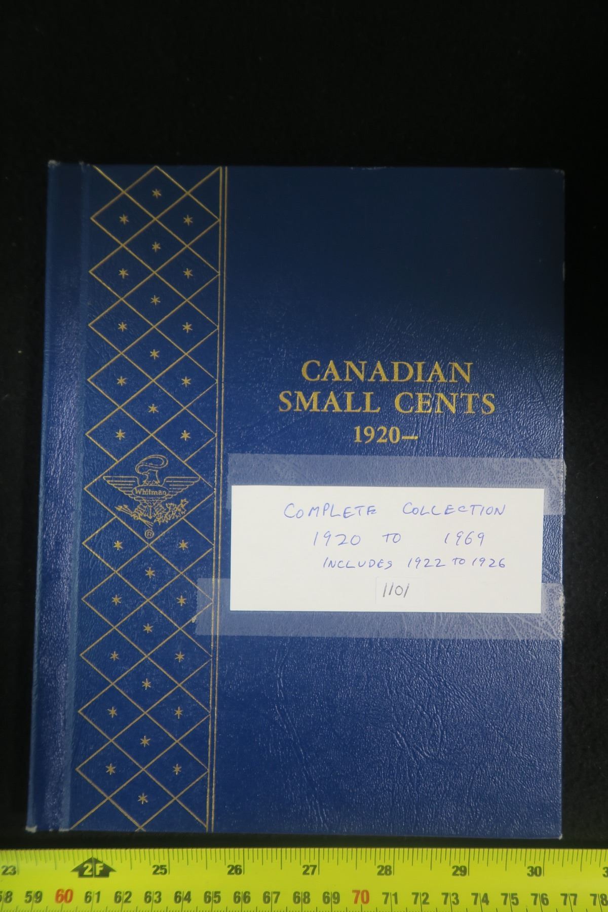 Complete Collection of Canadian Small Cents 1920 to 1969. Includes Key Dates 1922 – 1926. Coins grade F to BU Red. A nice collection housed in a blue Whitman album.