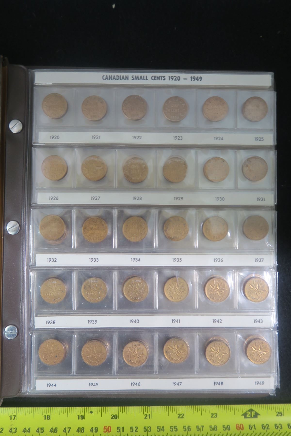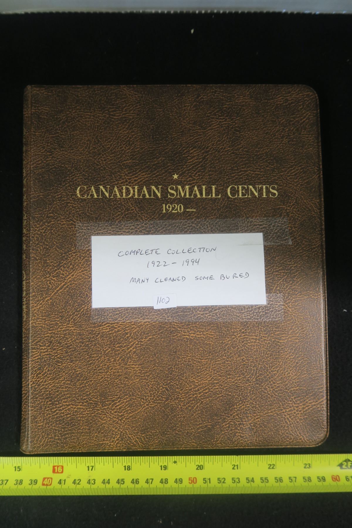 Complete Collection of Canadian Small Cents 1920 to 1994. Includes Key Dates 1922 – 1926. Most have been cleaned but from 1970 to 1994, they are all BU or Proof Like. Housed in a brown Harco Coinmaster album. Coins grade VG to BU or PL Red.