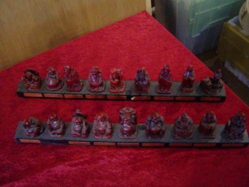 Eighteen Lucky Ho Tai Buddhas on Display Boards with Gold Labels, to bring you luck, happiness, prosperity, long life and everything else!!!