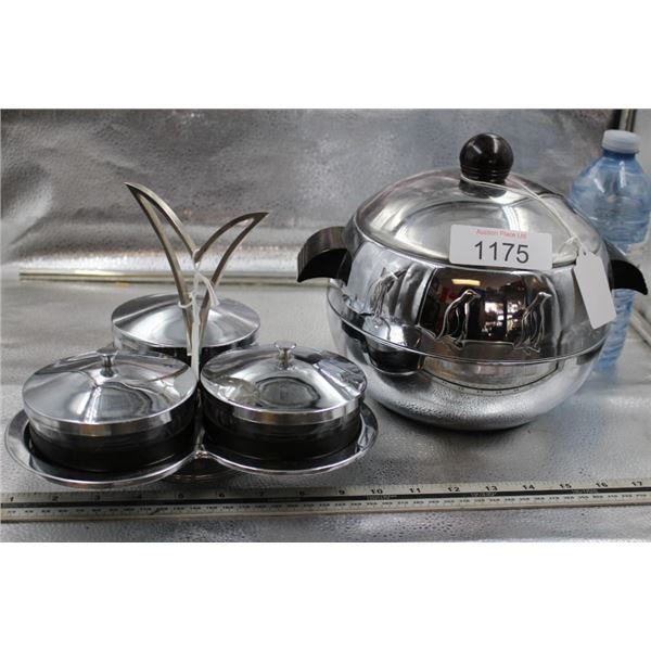 Vintage Glass and Silver Plate Condiment Serving1183 - Vintage Glass and Silver Plate Condiment Serving