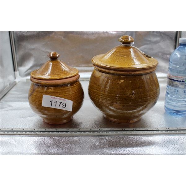 Set of 2 Vintage Brown Glazed Ceramic Pots1179 - Set of 2 Vintage Brown Glazed Ceramic Pots