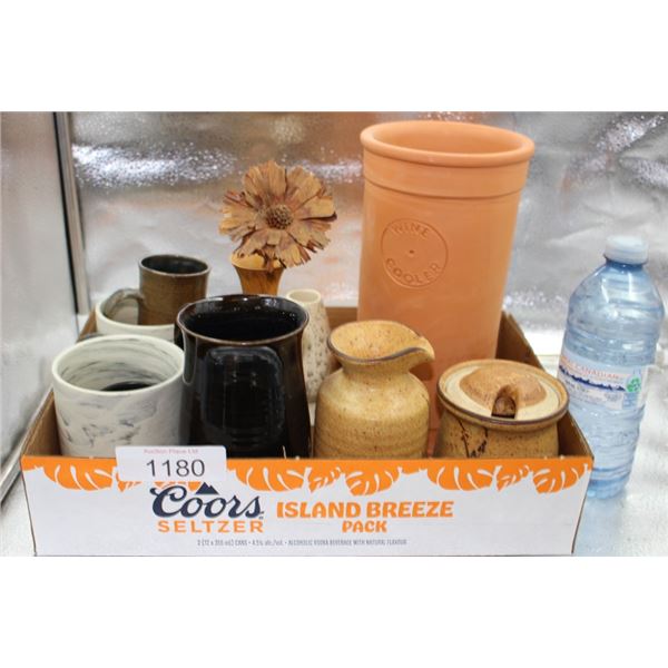 2 Cups and Wine Cooler. 2 Mugs and Stoneware Glazed Mug