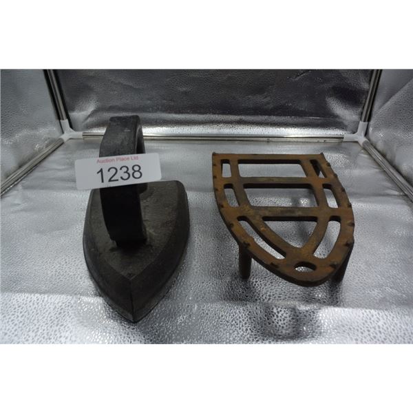 Large Antique Iron and Trivet1238 - Large Antique Iron and Trivet