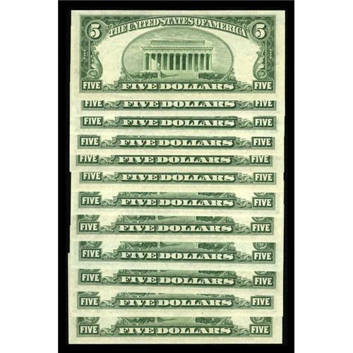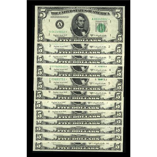 <B>Complete District Set Fr. 1964-A*-L* $5 1950C Federal Reserve Star Notes. Choice Crisp Uncirculated or Better.</B></I><BR> Plenty of natural paper ripple is seen on each of these twelve star notes. Nice embossing is also noticed with several of these replacement examples approaching gem status.<BR><I>From The Thomas M. Flynn Collection</B></I><BR><BR><b>Shipping:</b> Coins & Currency (<a target="_blank" href="http://www.heritageauctions.com/common/shipping.php">view shipping information</a>)