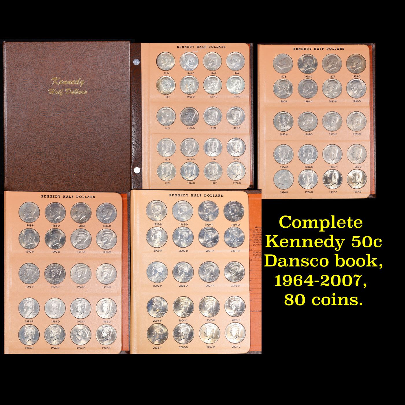 Complete Kennedy 50c Dansco book, date 1964-2007, 80 coins.